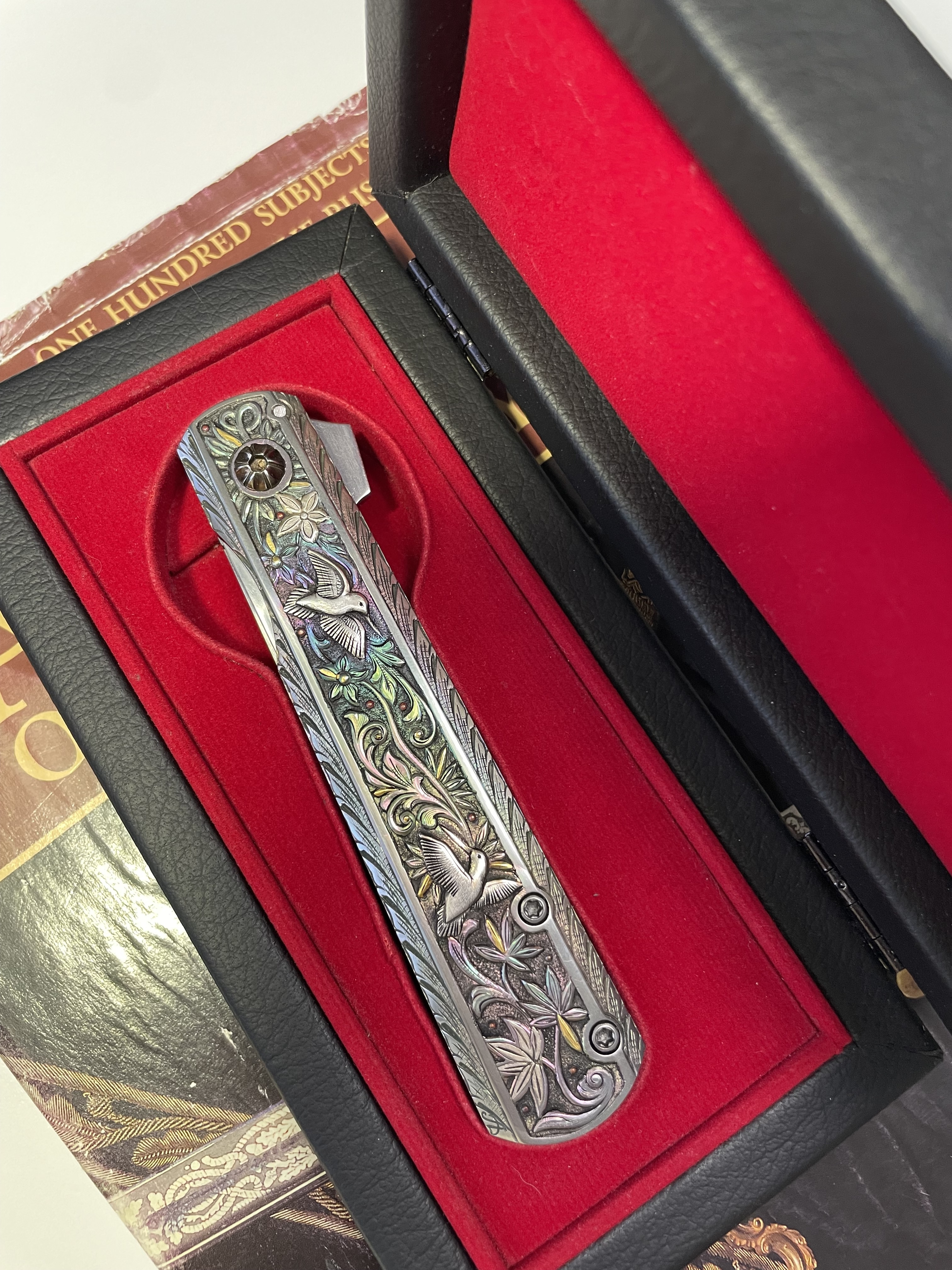 с клинком из MagnaCut , рукоять титан и ручной гравировкой.