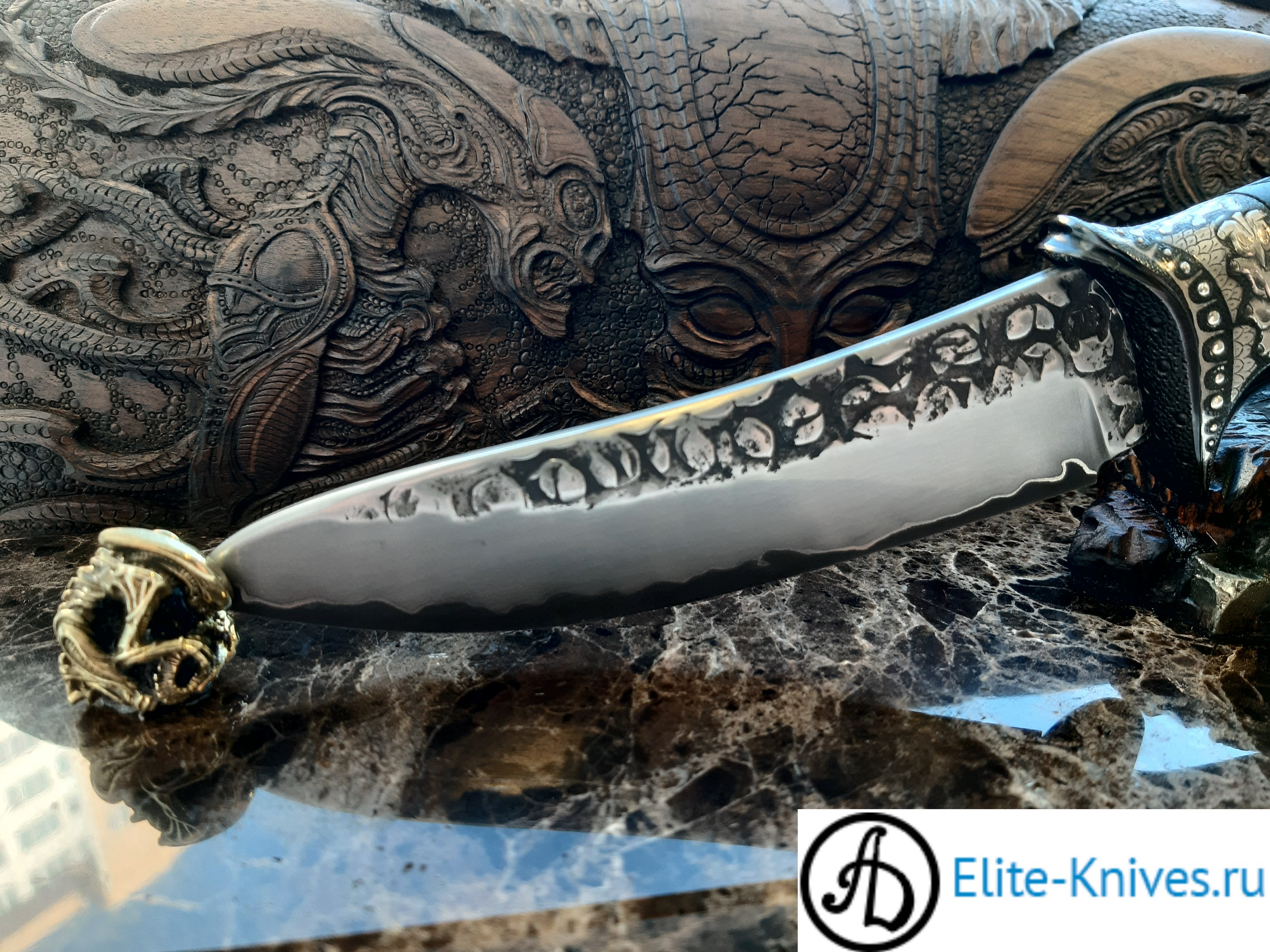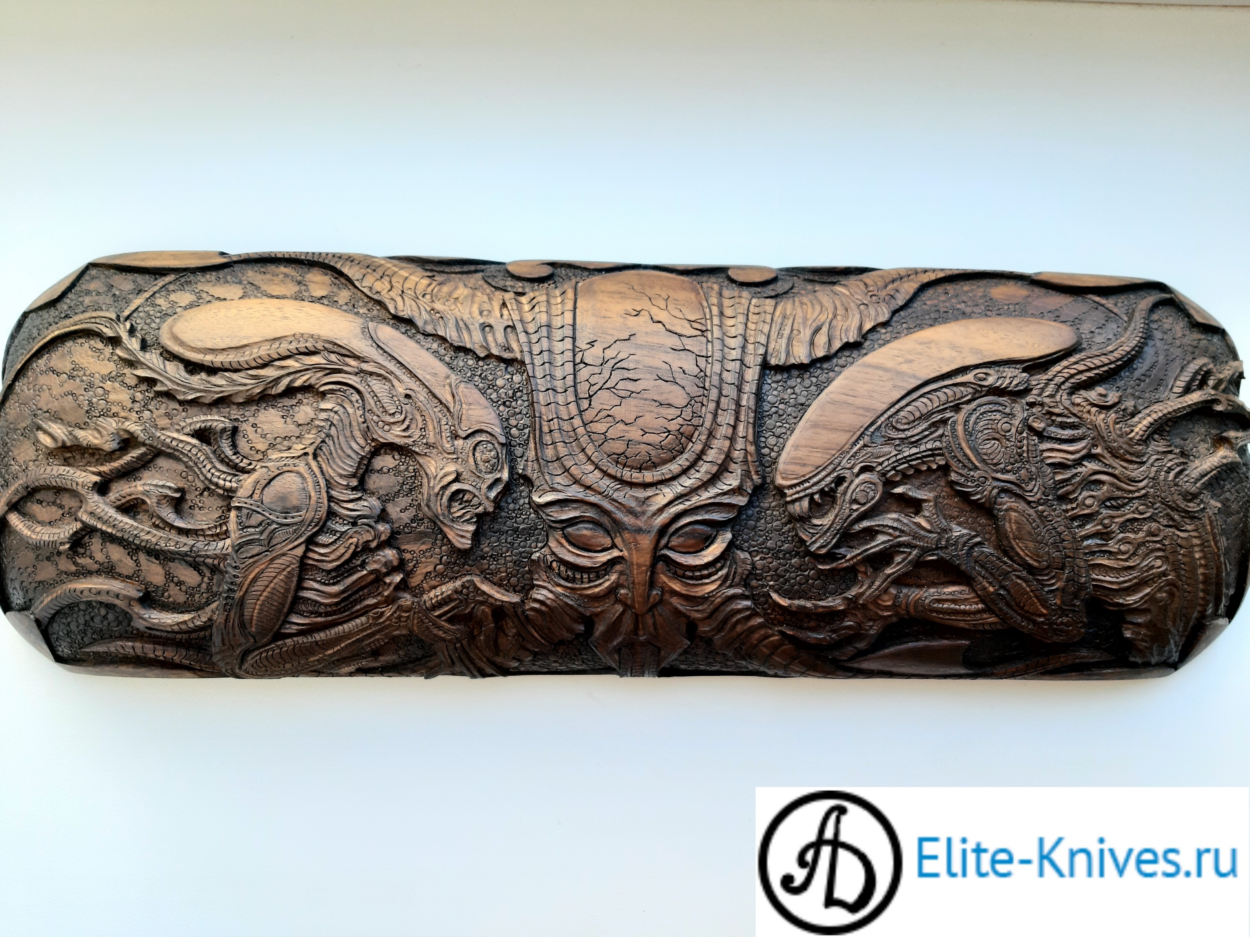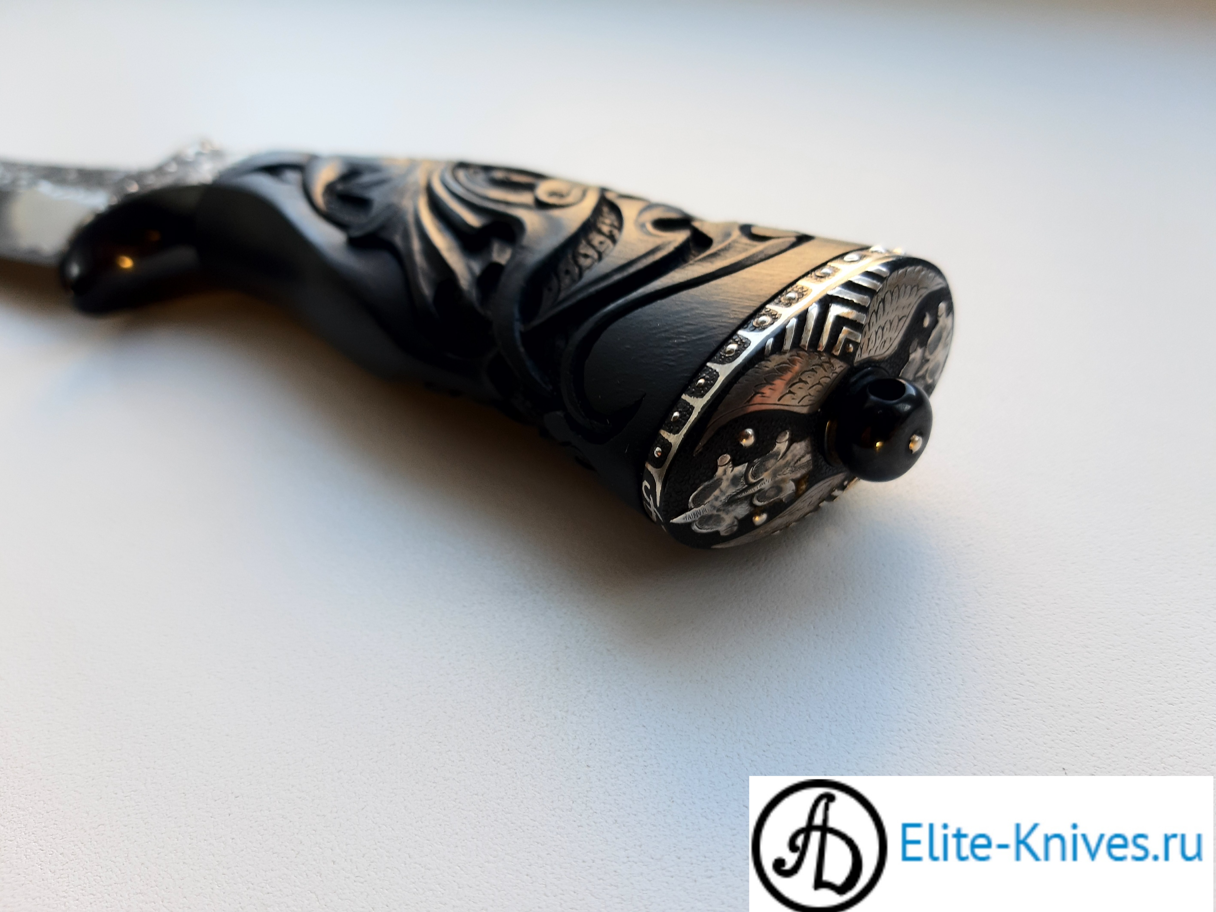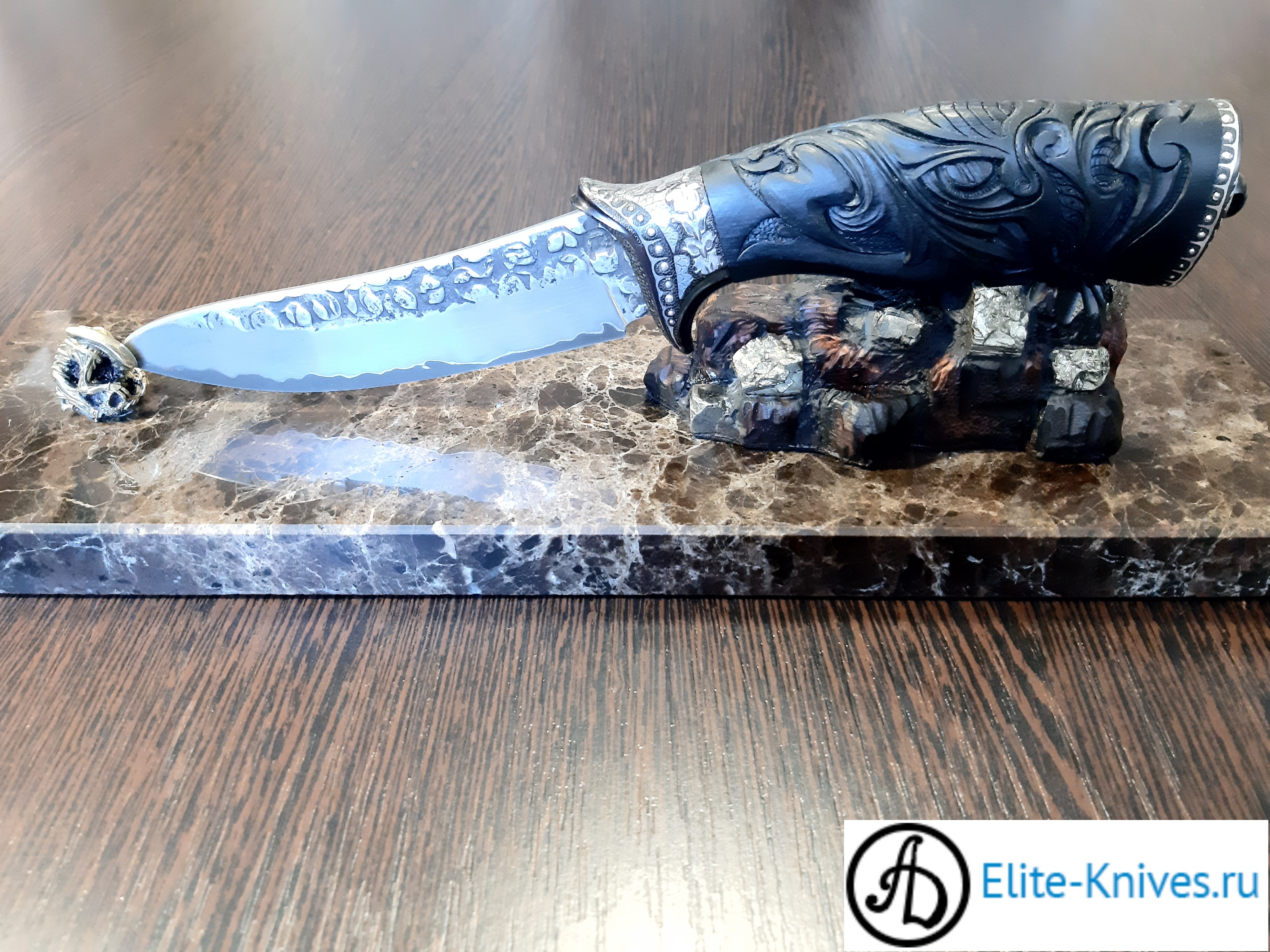 Дерево рукояти:граб чёрный стабилка,объёмная резьба по дереву.