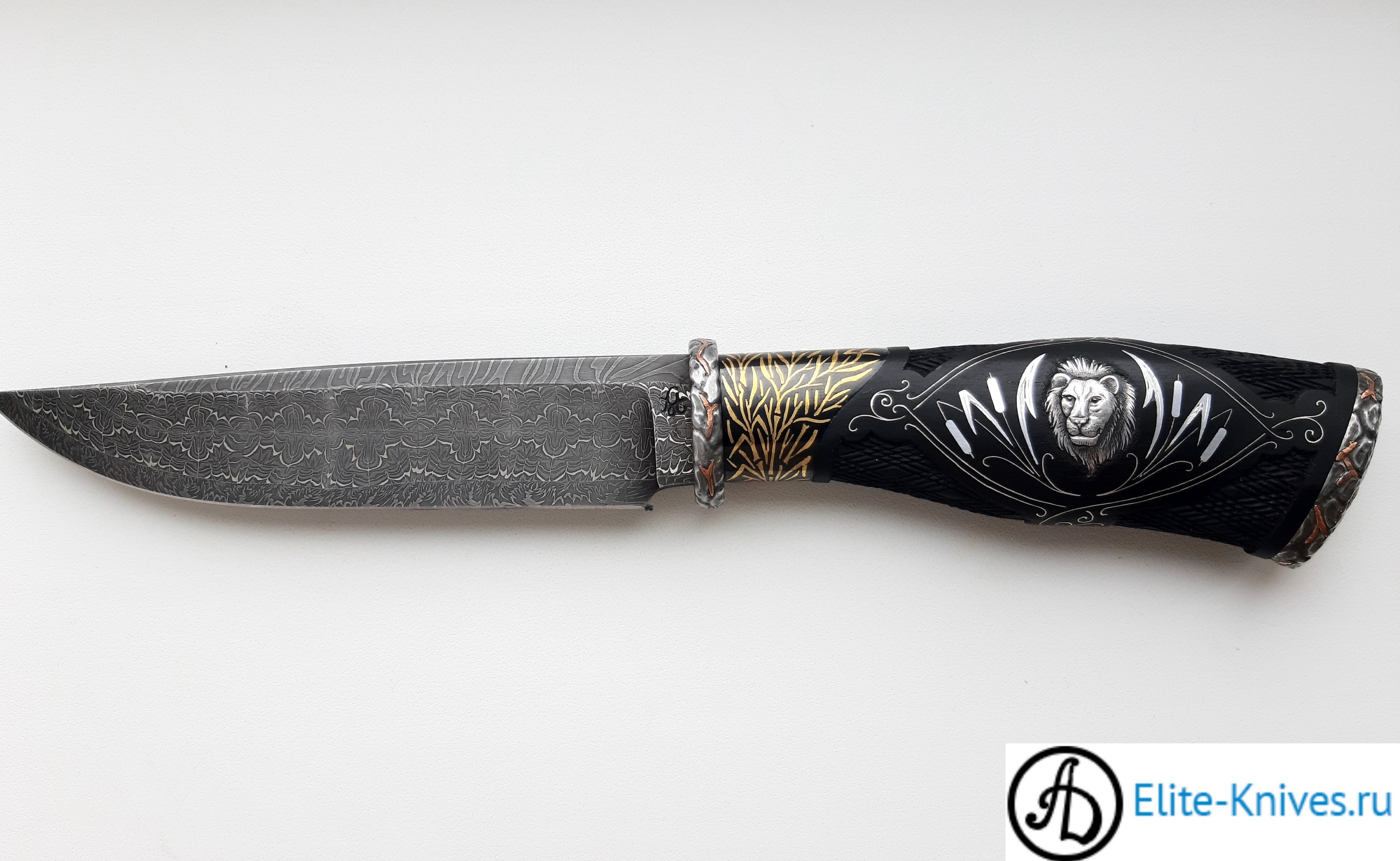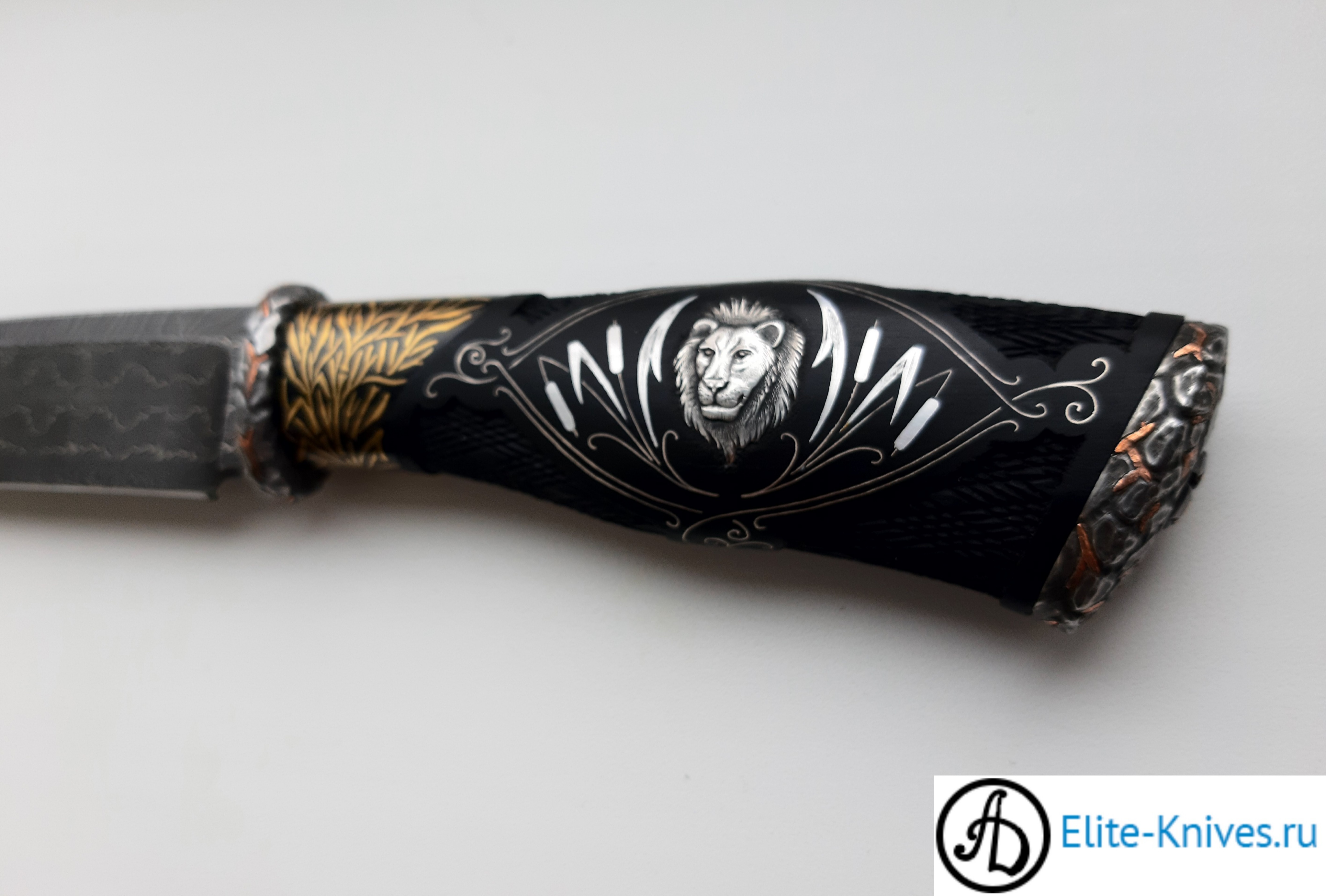 -Рукоять:граб чёрный стабилка,инкрустация серебром,лев(гравировка).