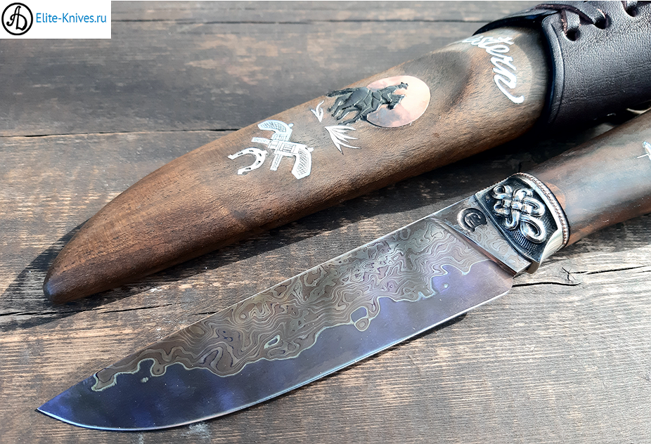 Клинок ламинат состав: Bohler K340 обкладки-30Х13, Х18H10T , калка твердость 61 единиц.