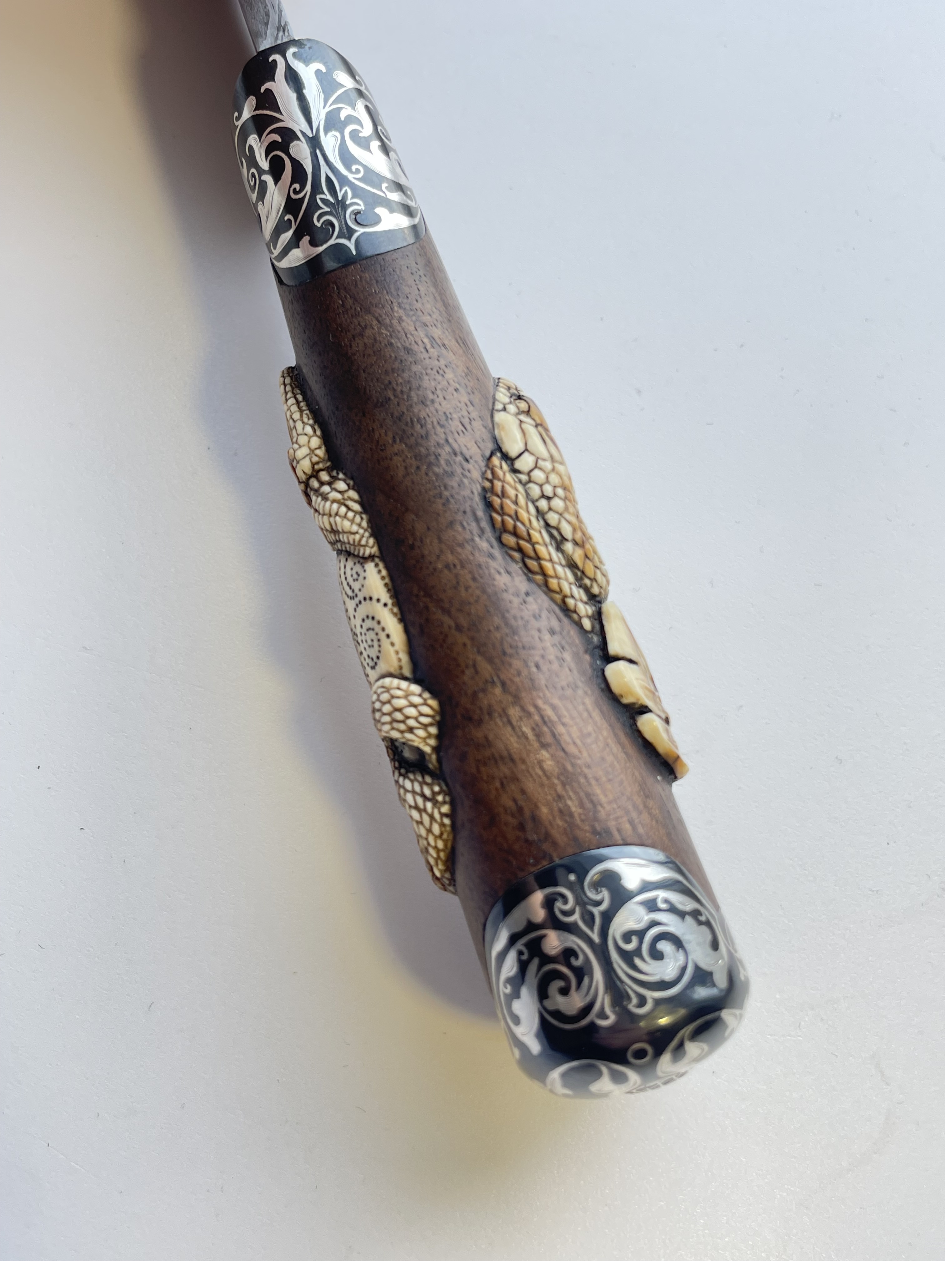 Ручная гравировка всечька белым металлом , резьба по кости ( мамонт).