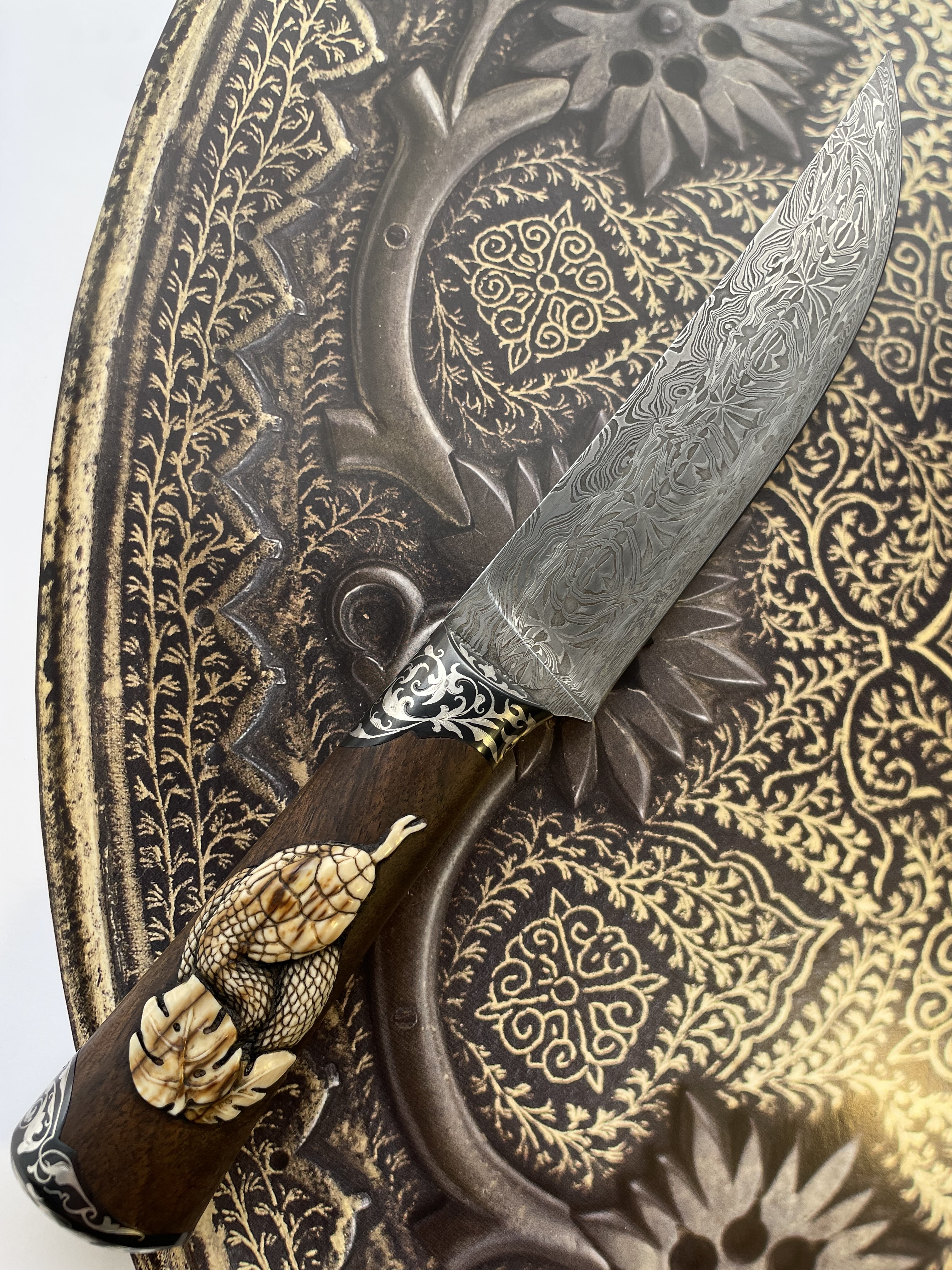 Нож выполнен в единственном экземпляре в Восточной стилистике ,по типу "Пчак".