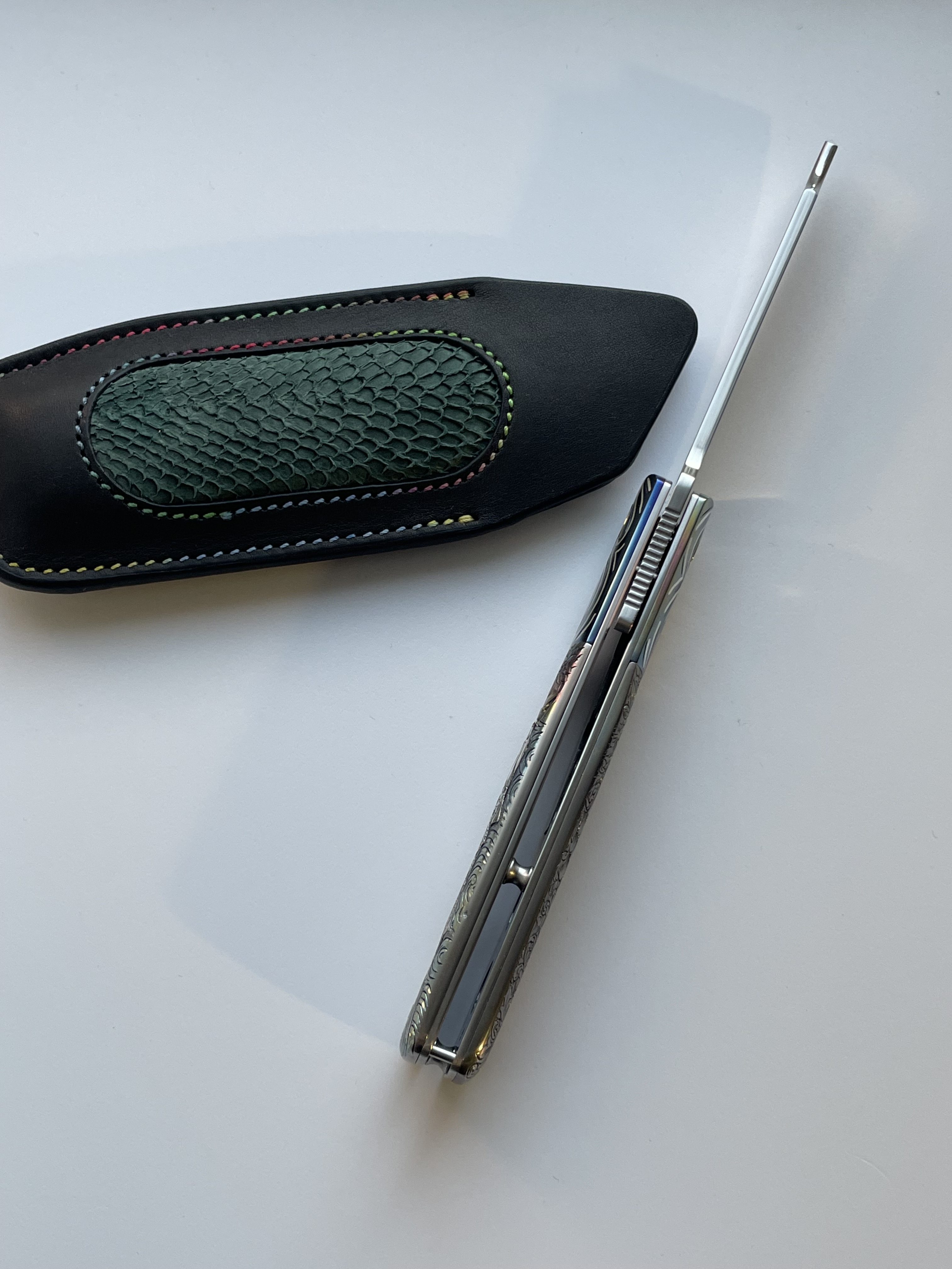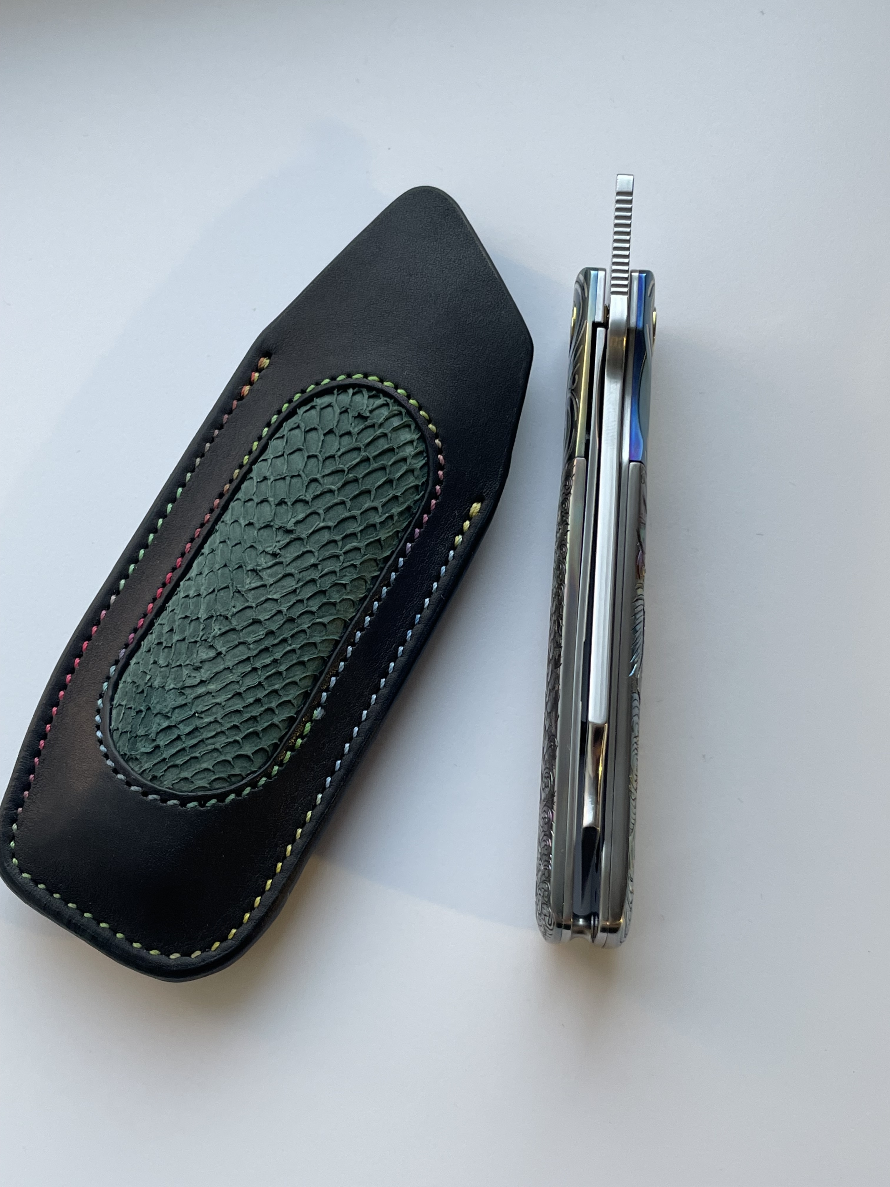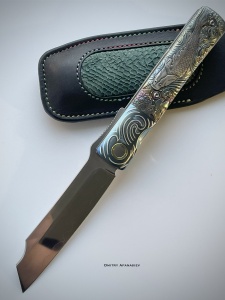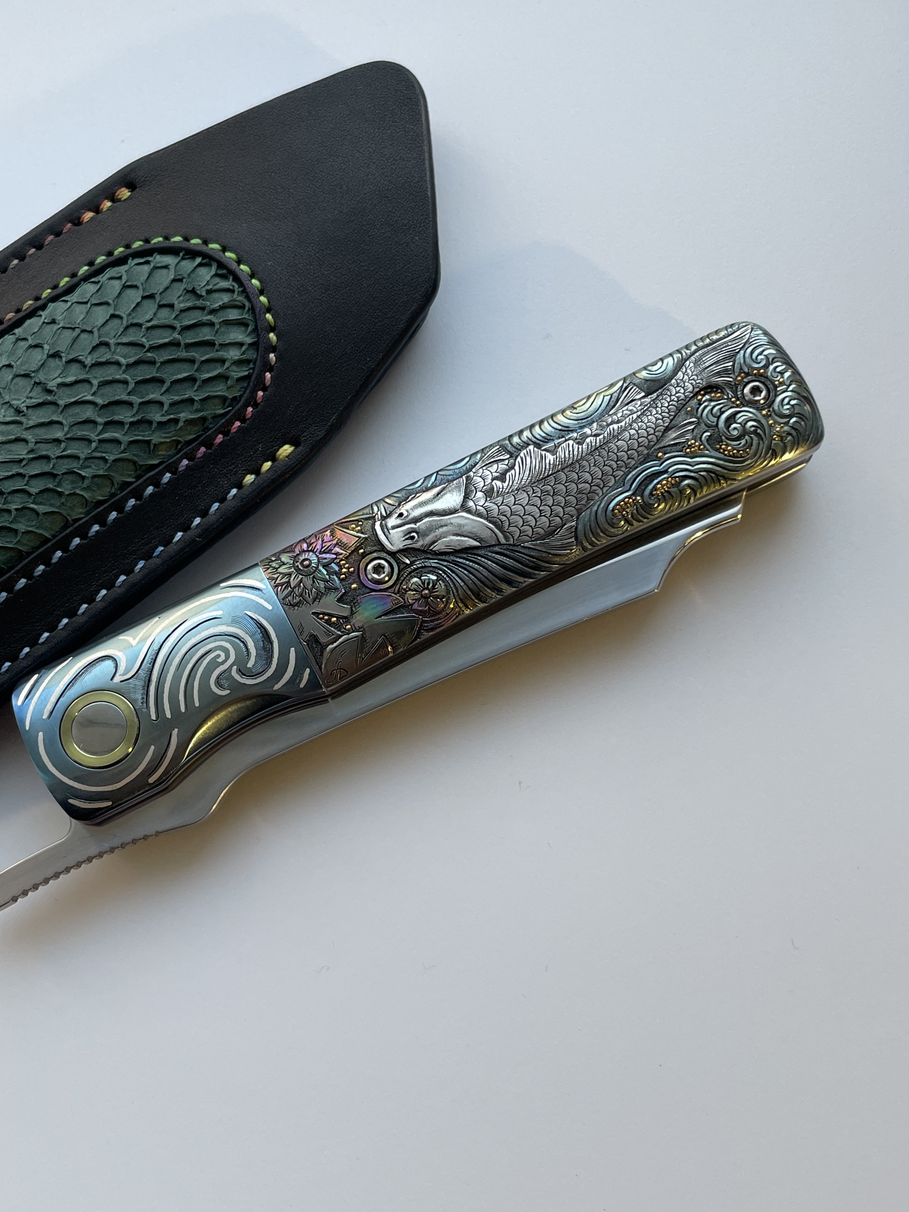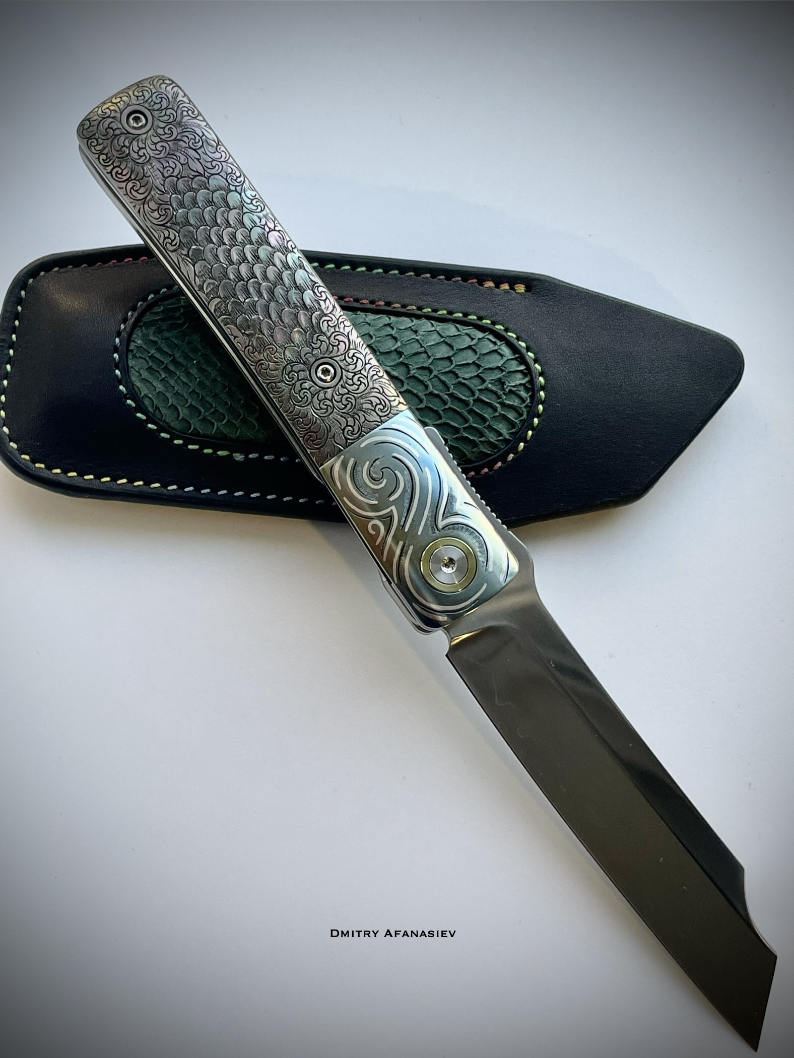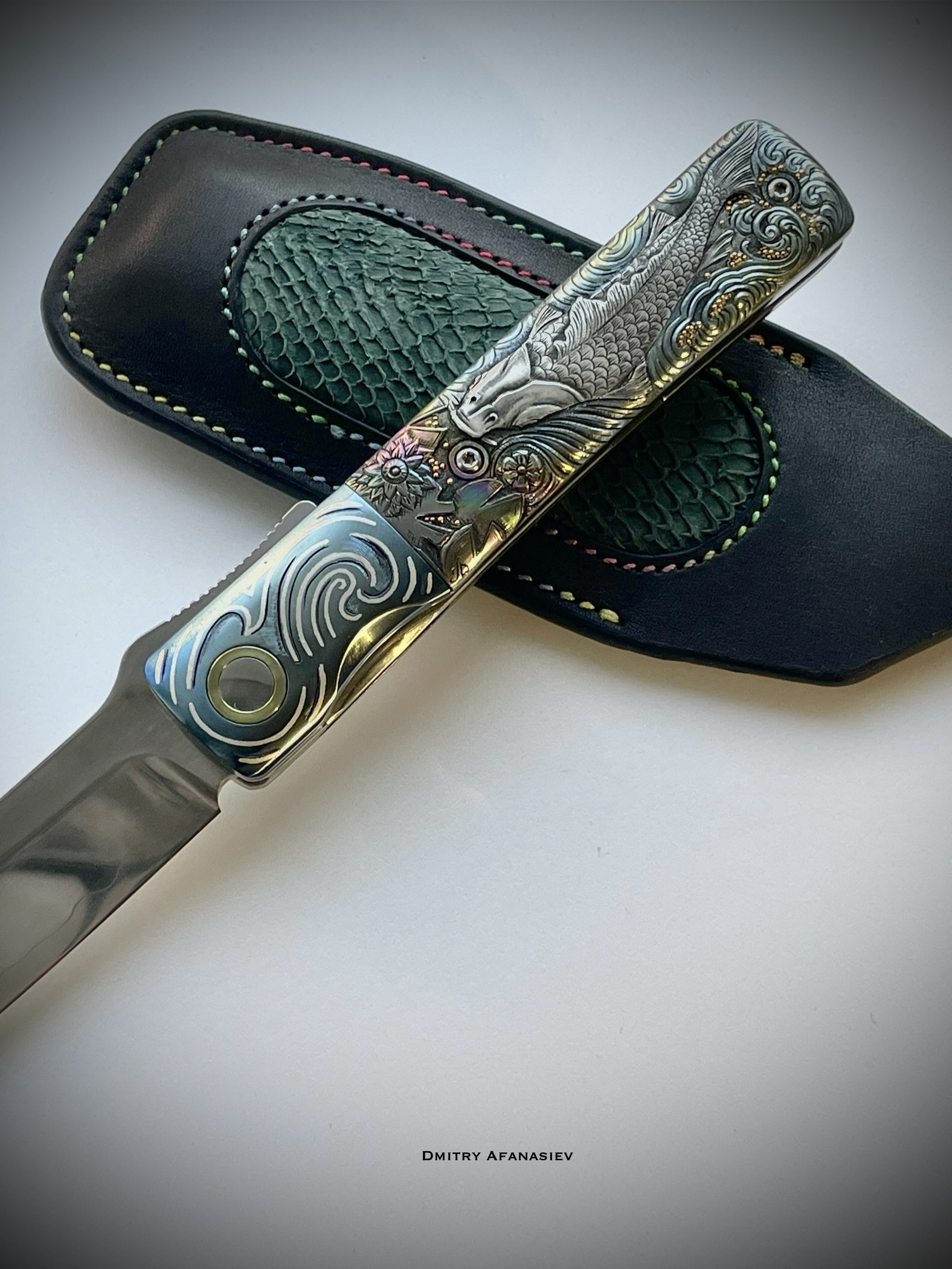 3,66-дюймовый сердечник SKD11 японская сталь , твёрдость 62 единицы. Накладки титан.