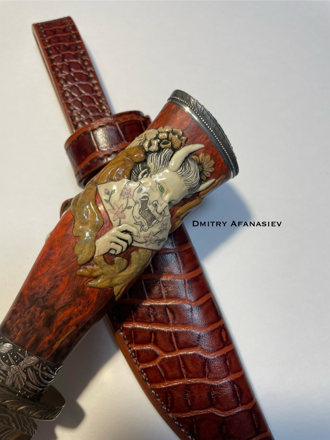 Клинок ламинат, ручная гравировка, скримшоу, бивень мамонта.