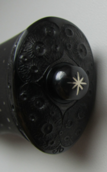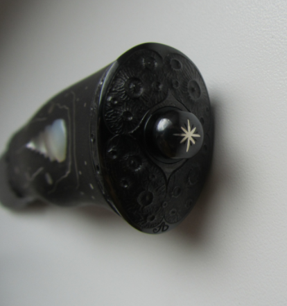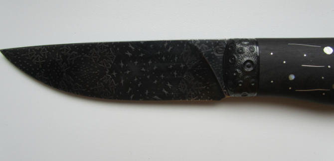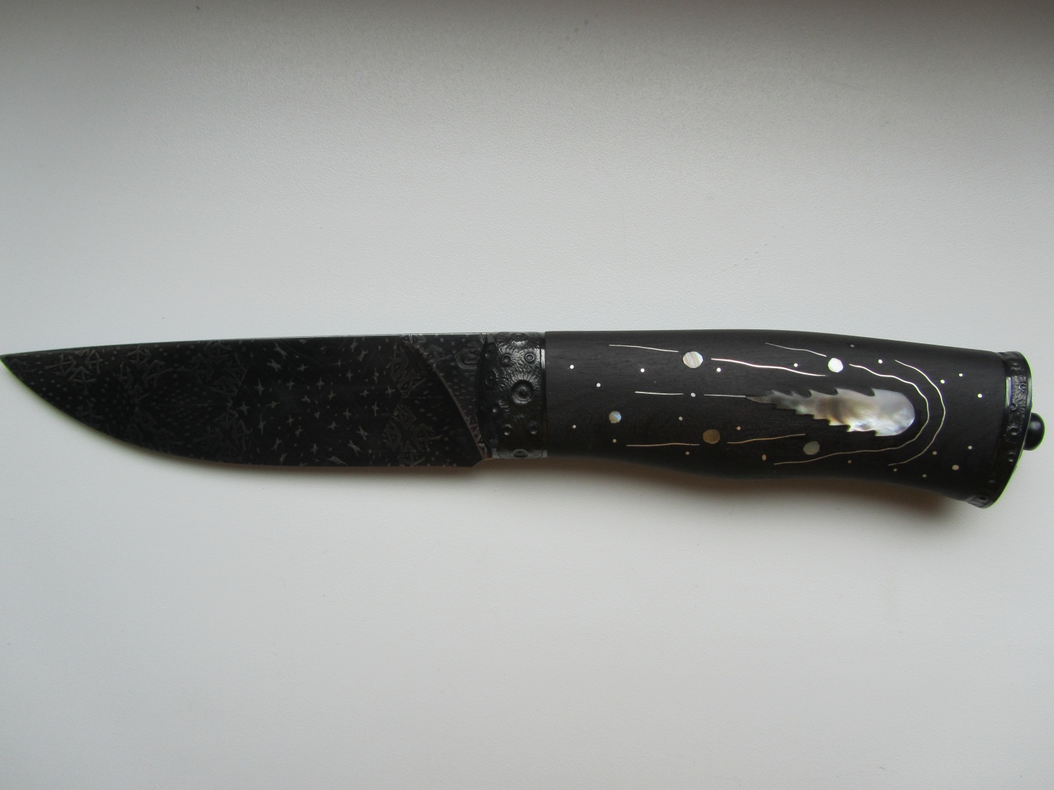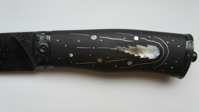 Рукоять: граб стабилка, резьба по дереву, перламутр.
