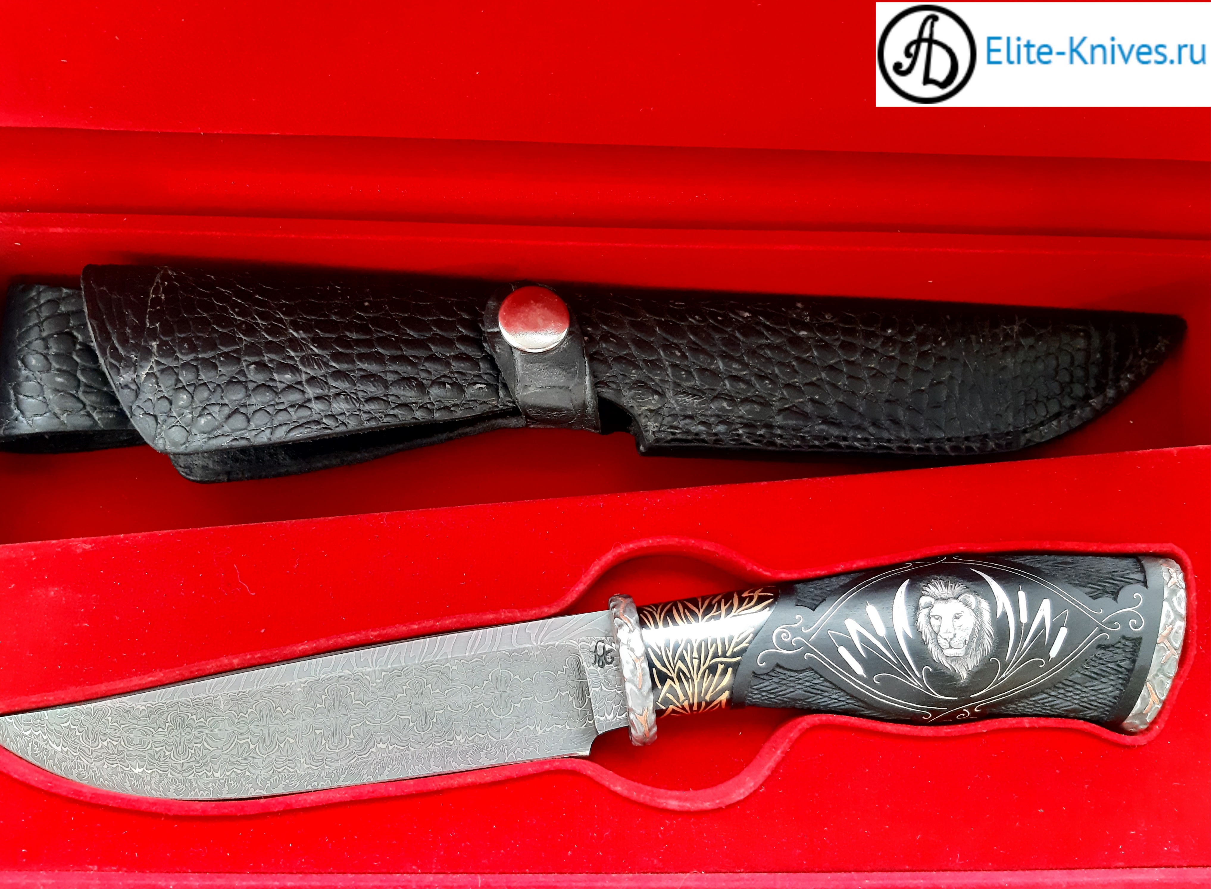 -Рукоять:граб чёрный стабилка,инкрустация серебром,лев(гравировка).