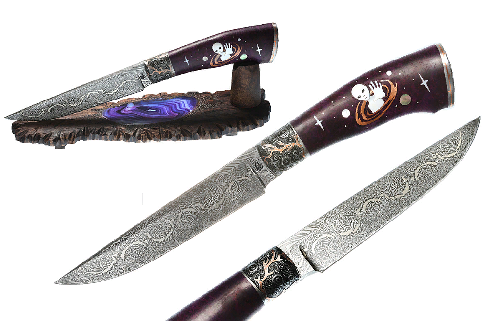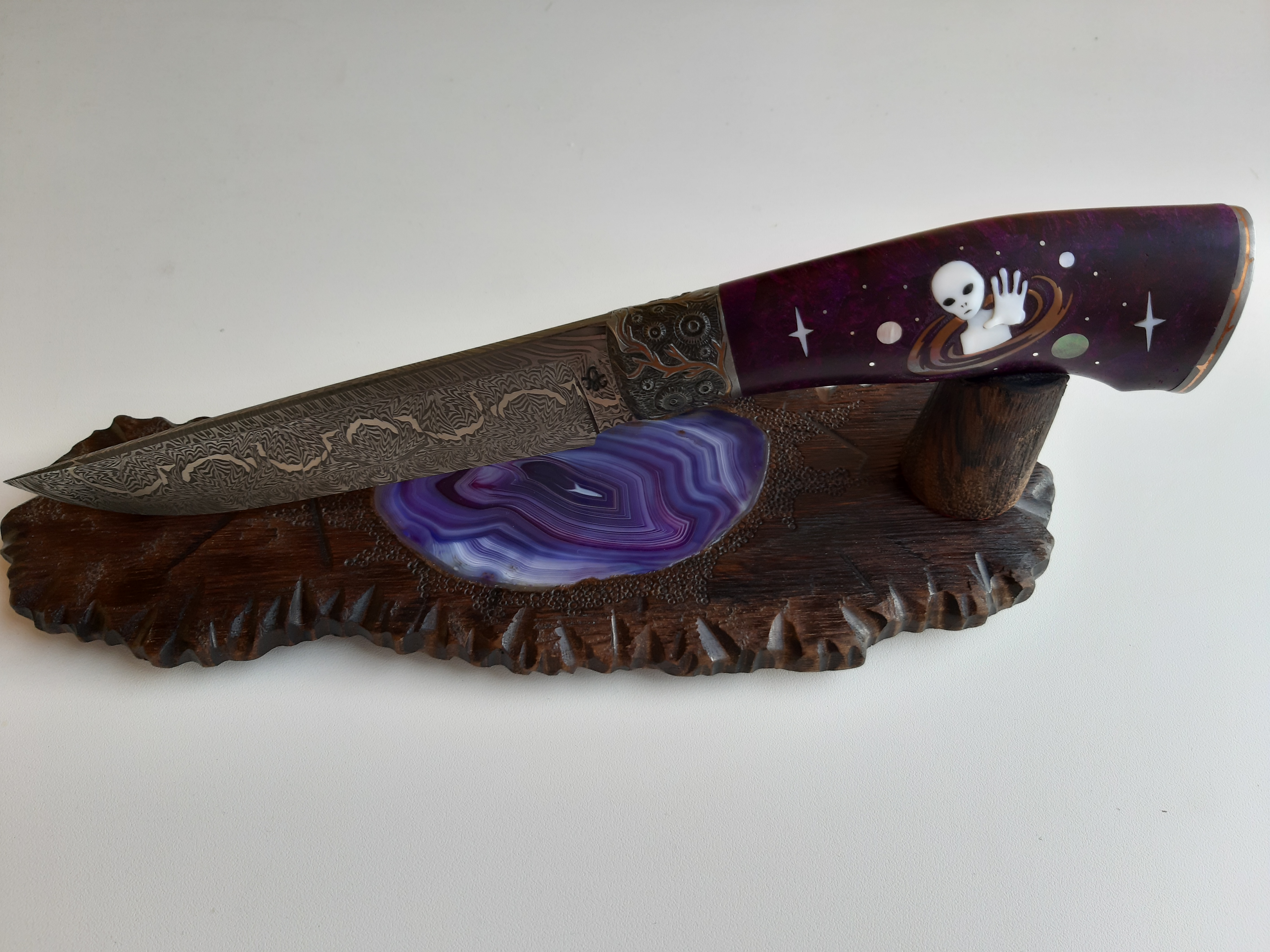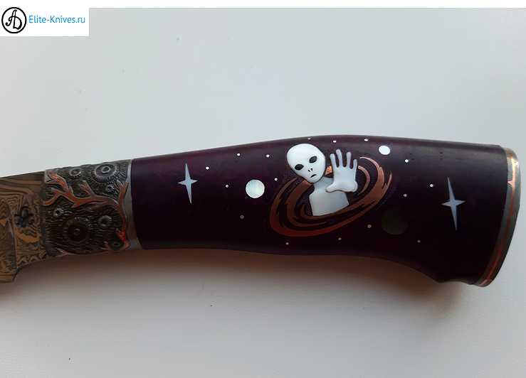 Клинок :мозаичный дамаск с никелем, калка 58-60 единиц.