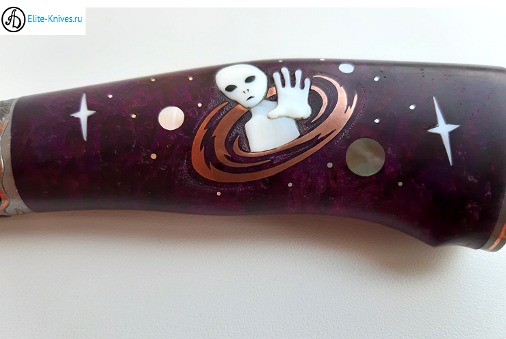 Дерево: Кап Карельской берёзы стабилка, инкрустация перламутр, (жёлтый и белый металл).