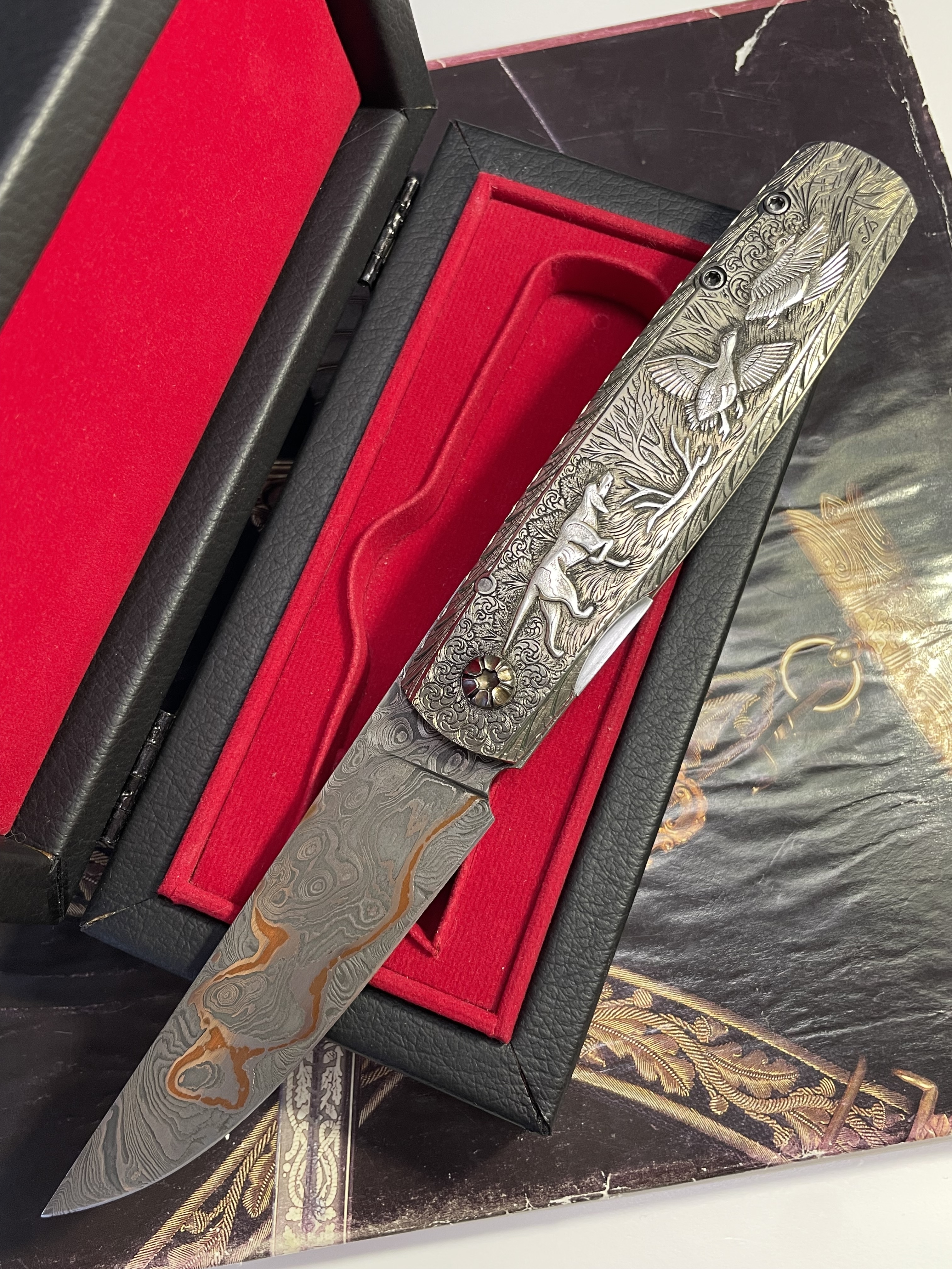 С ножом идёт Диплом, за 1-место в участии в конкурсе складной нож ,на выставке "Клинок".