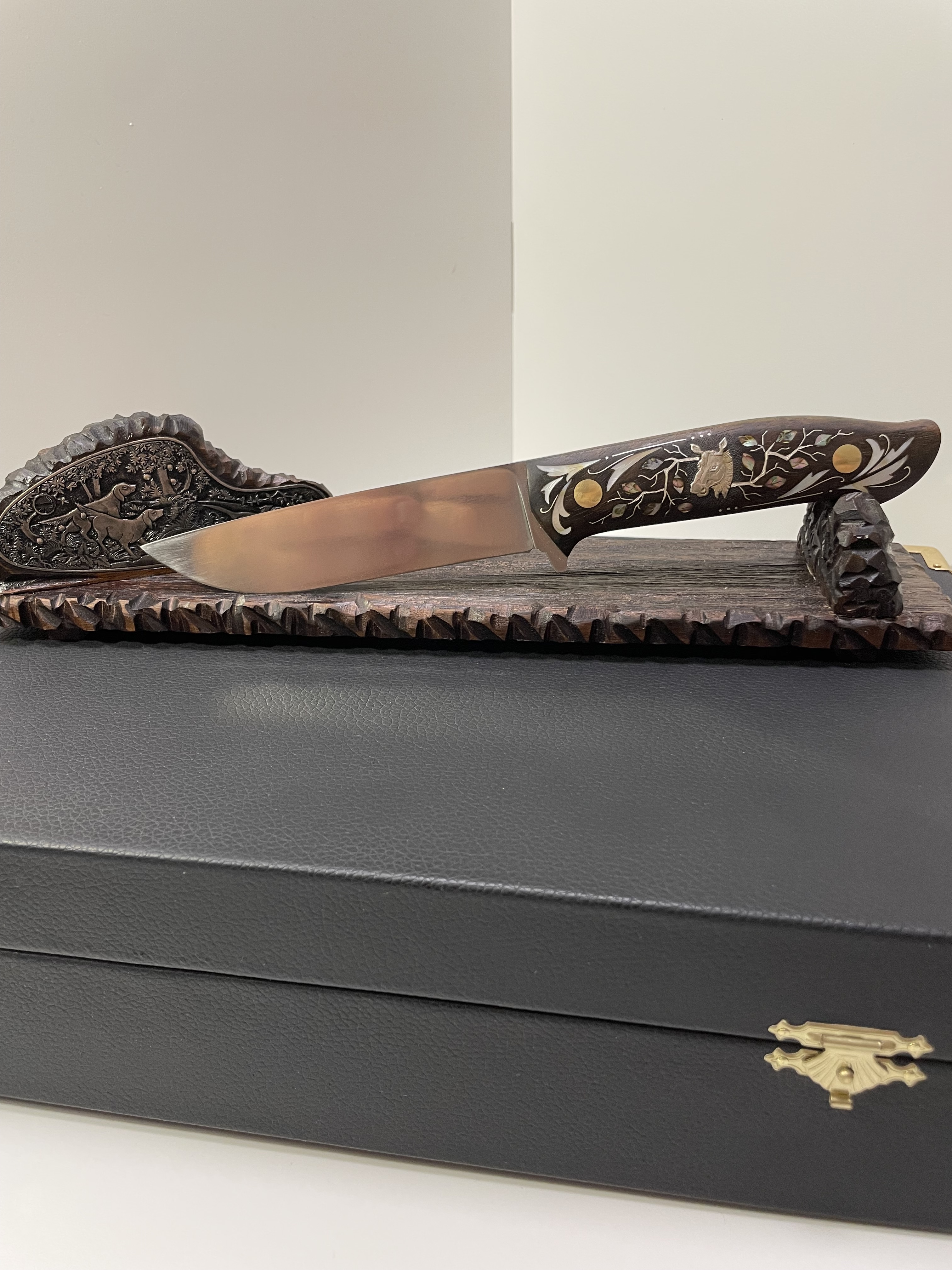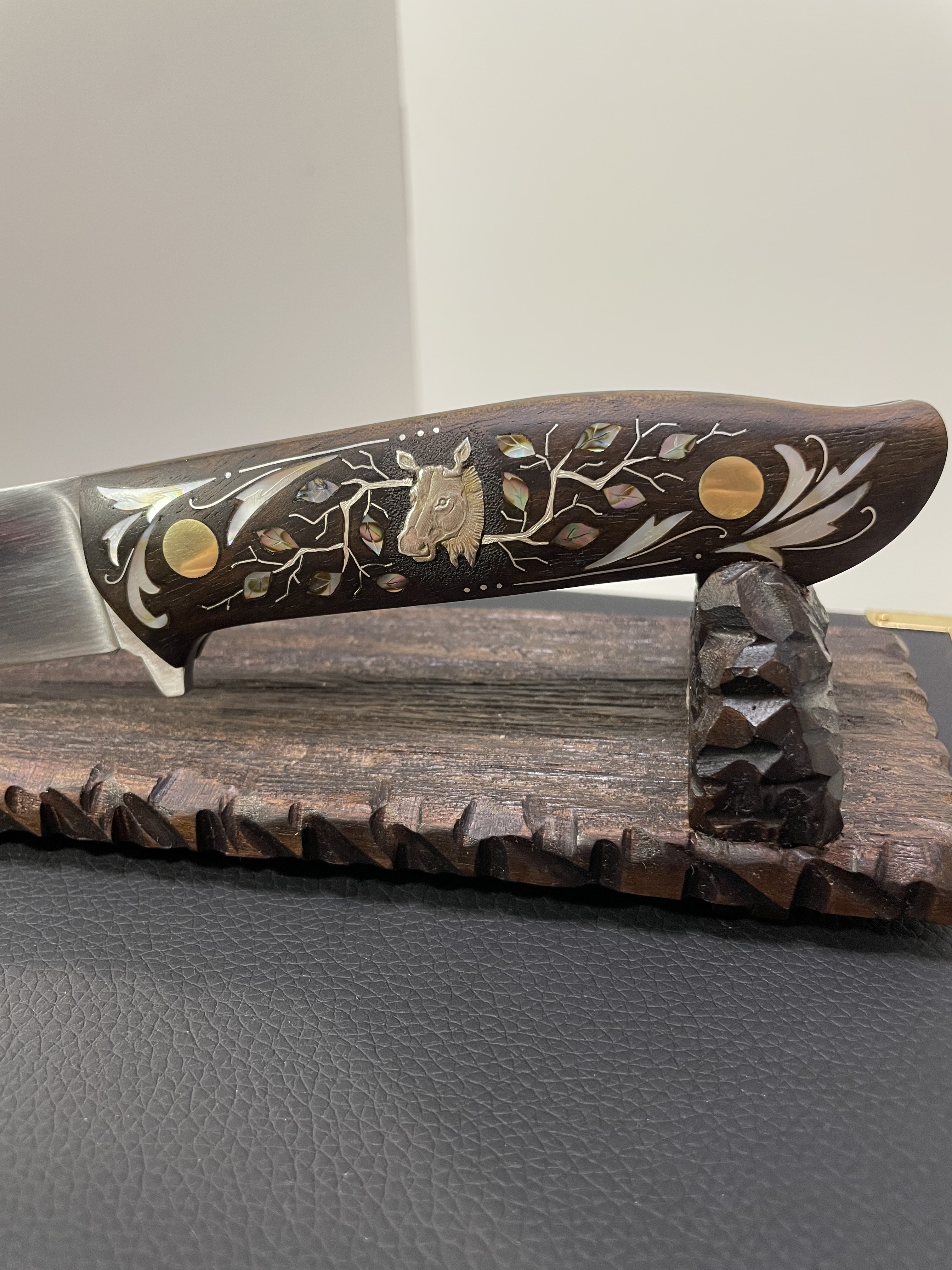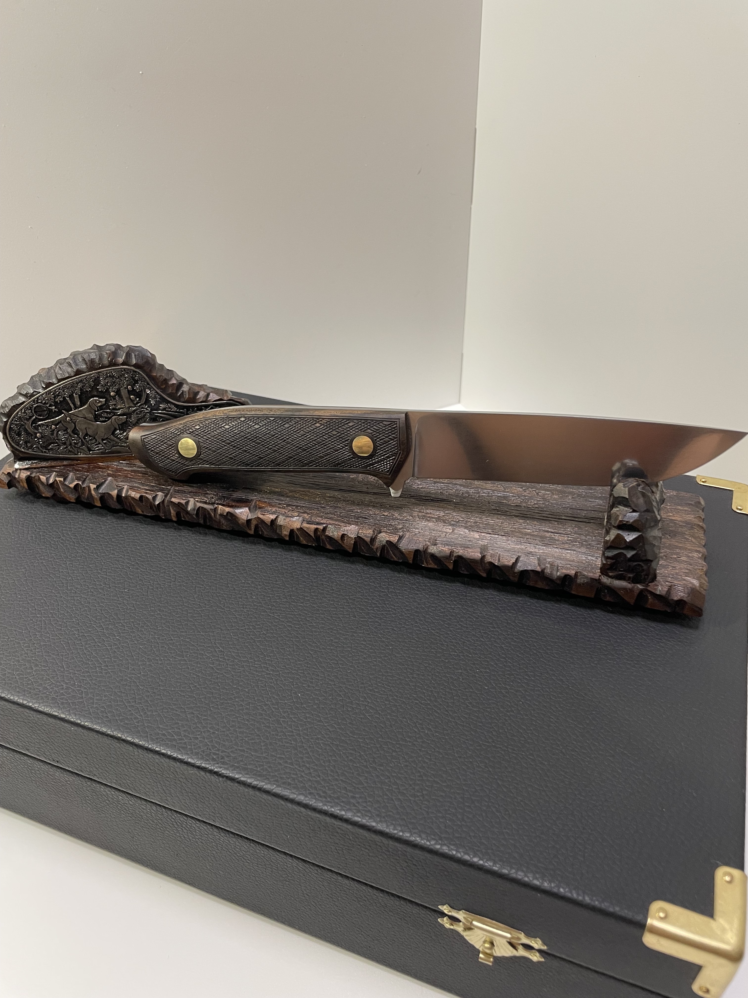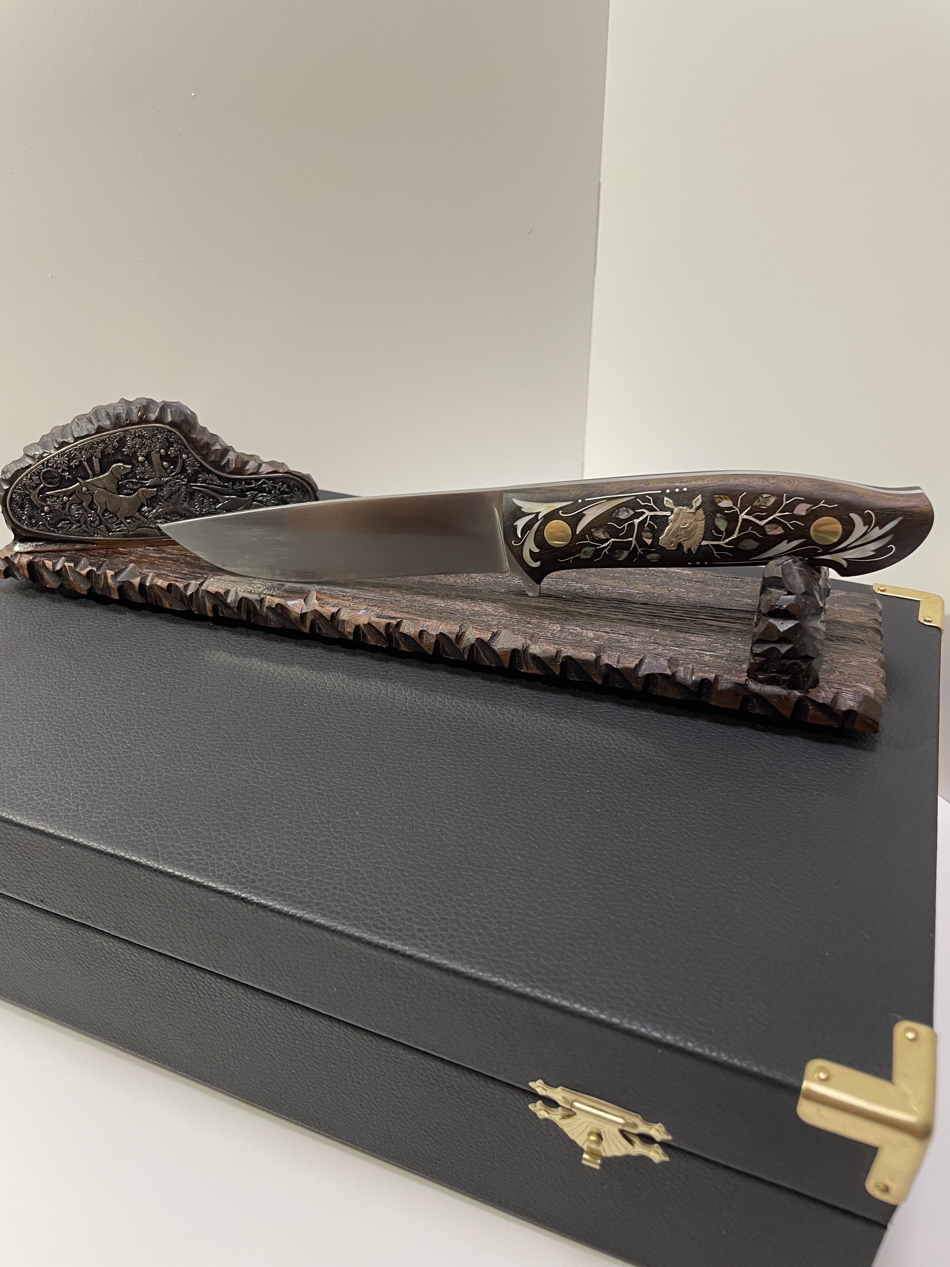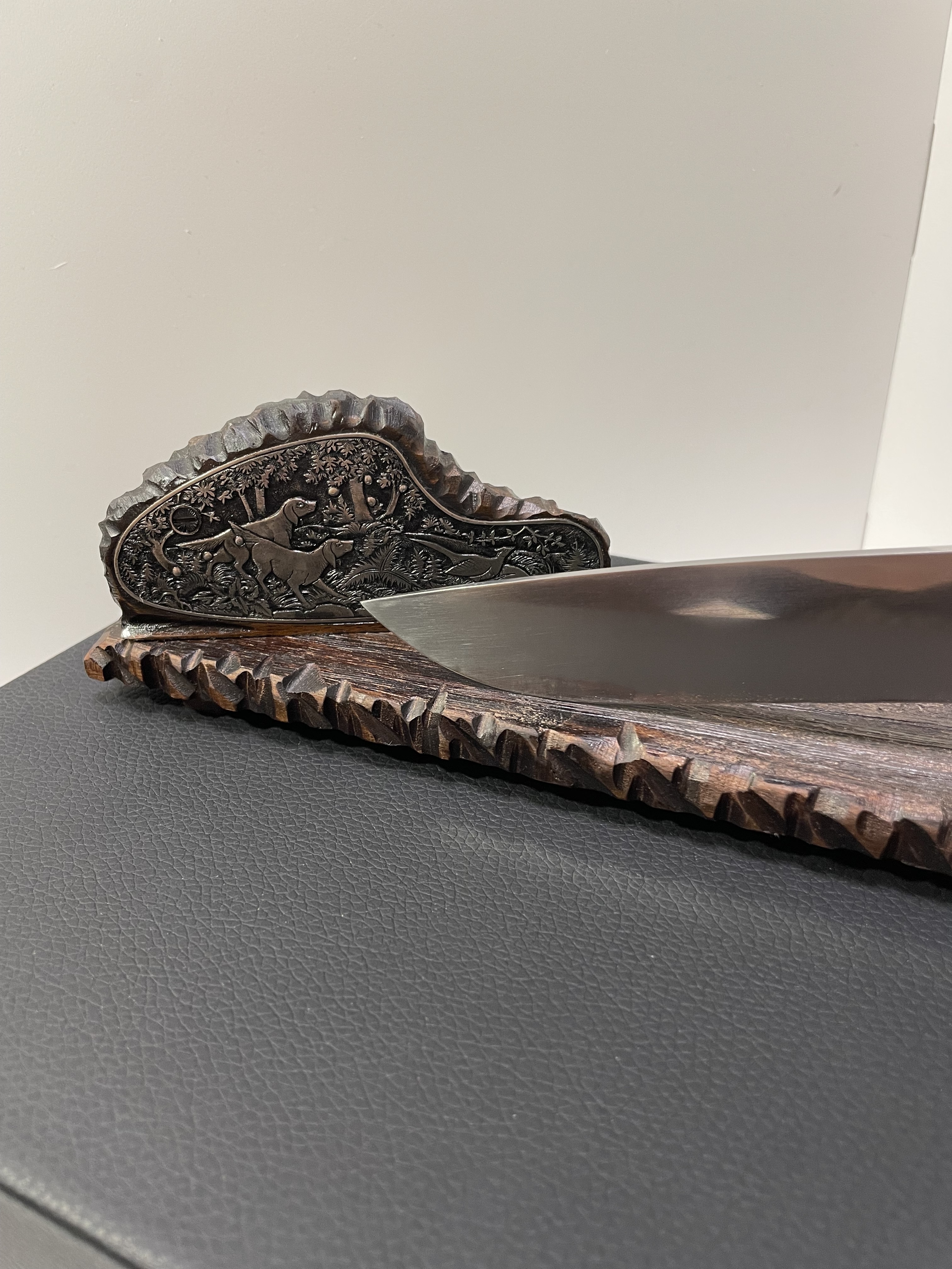Подставка из ореха, сценка с ручной гравировкой.