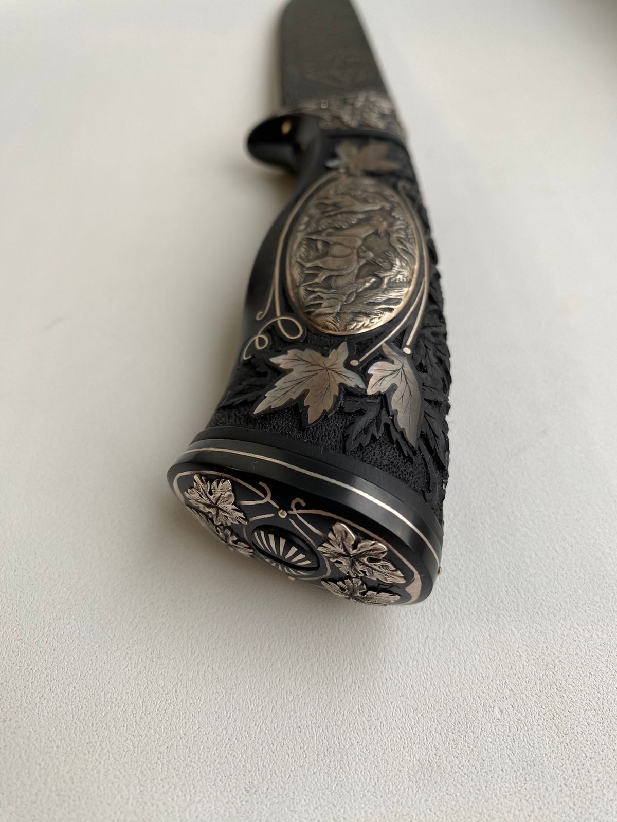 Гравировка: в технике всечка насечка белым металлом.