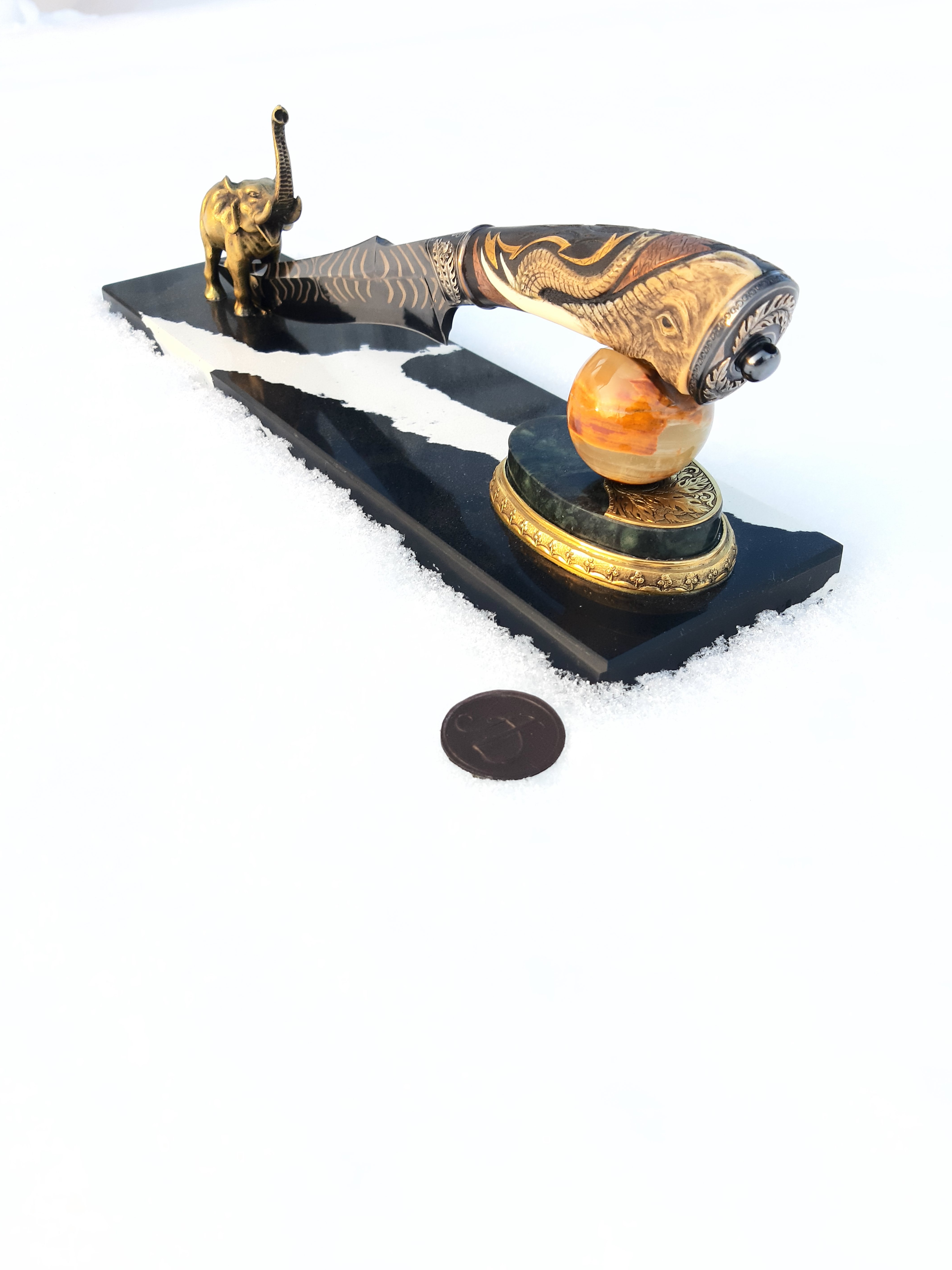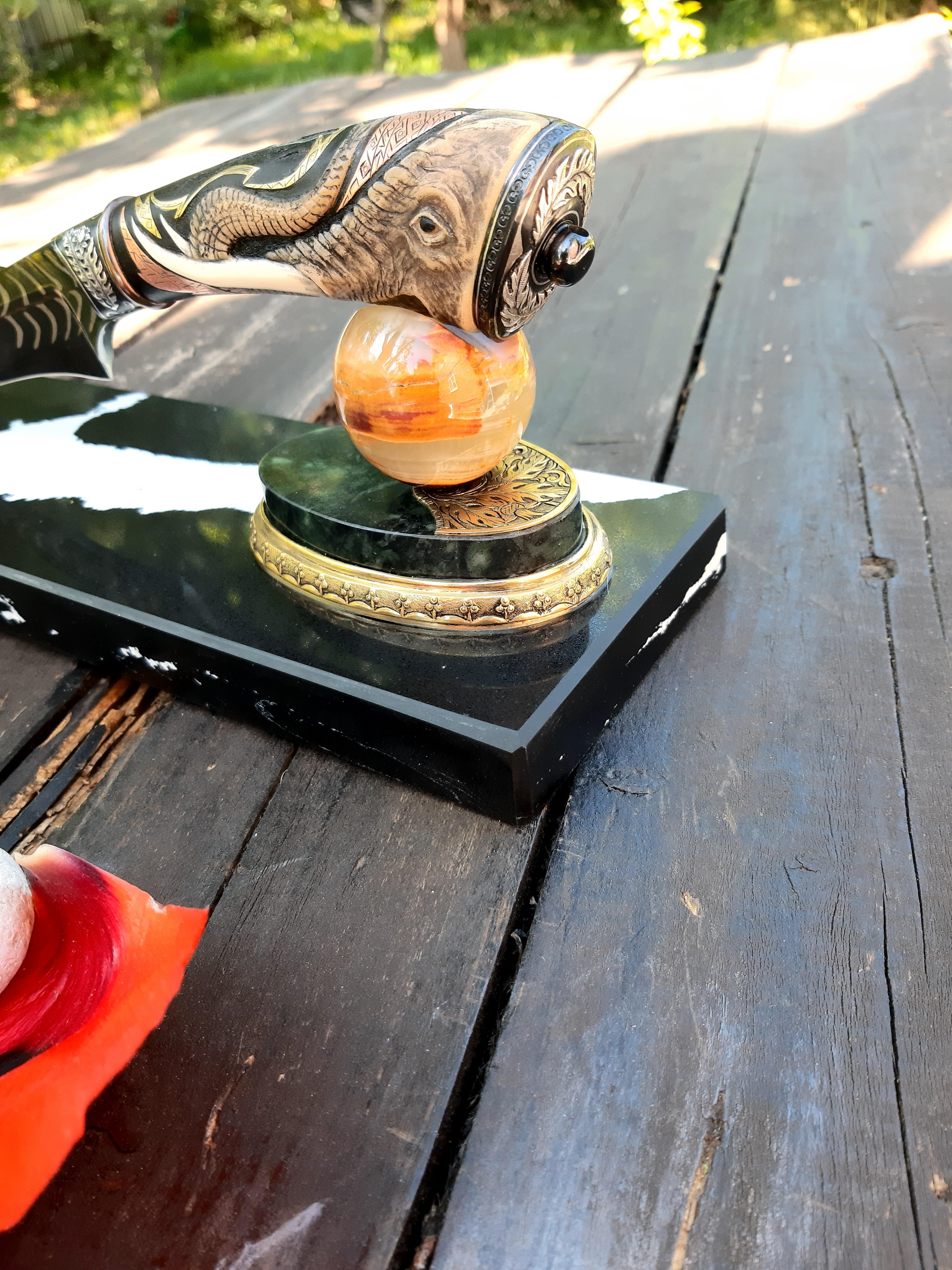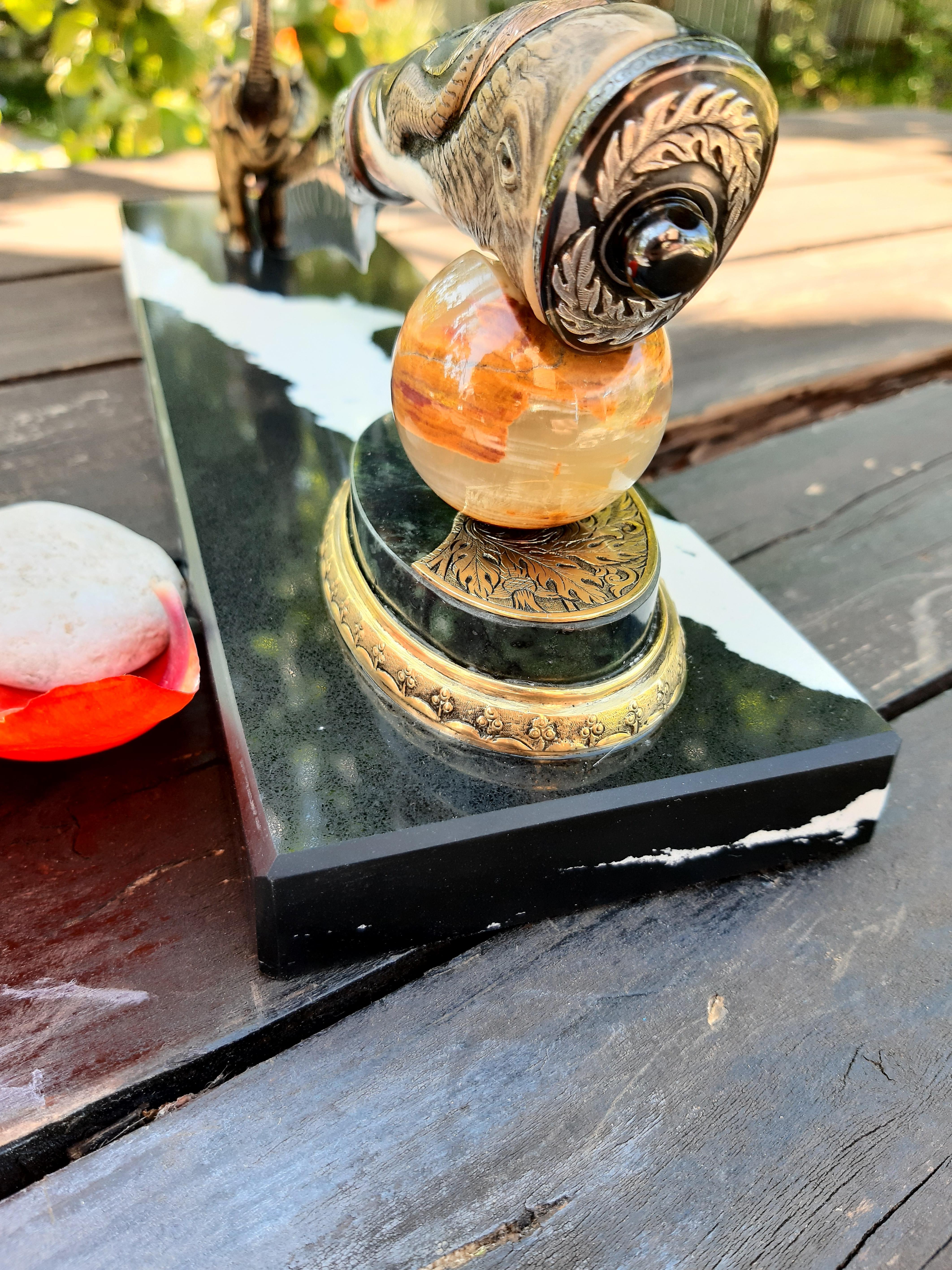 Подставка: авторское литьё бронза,камень змеевик, оникс,мрамор.