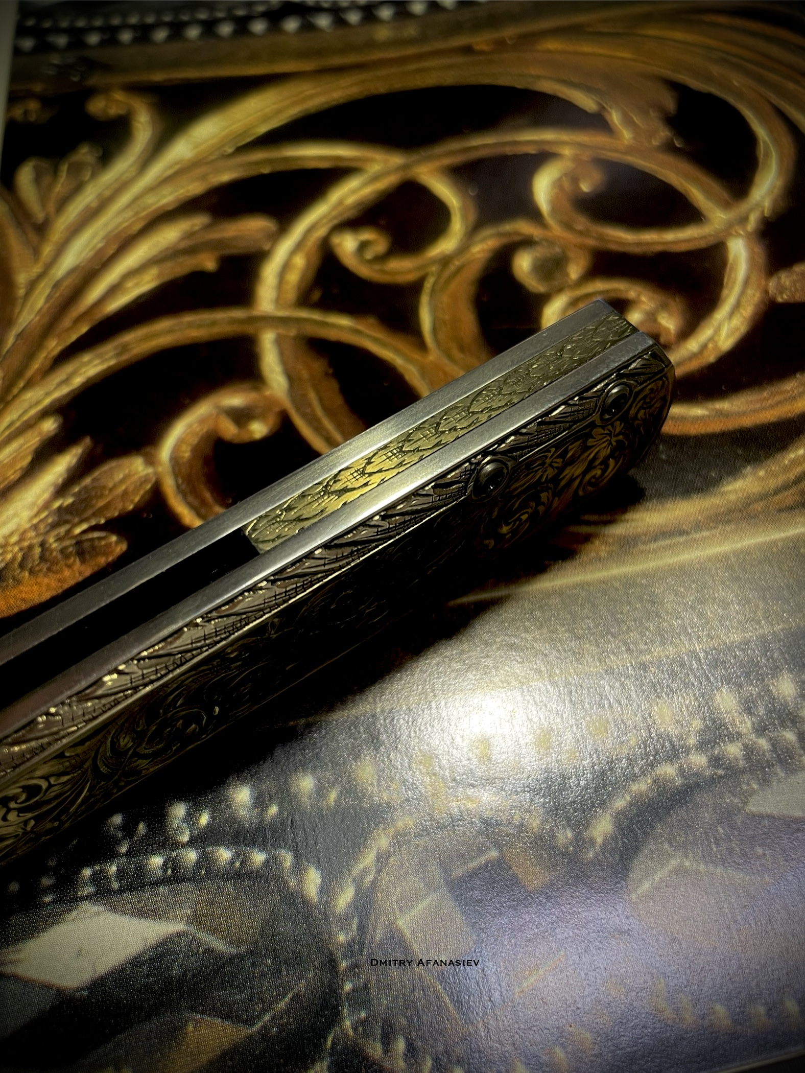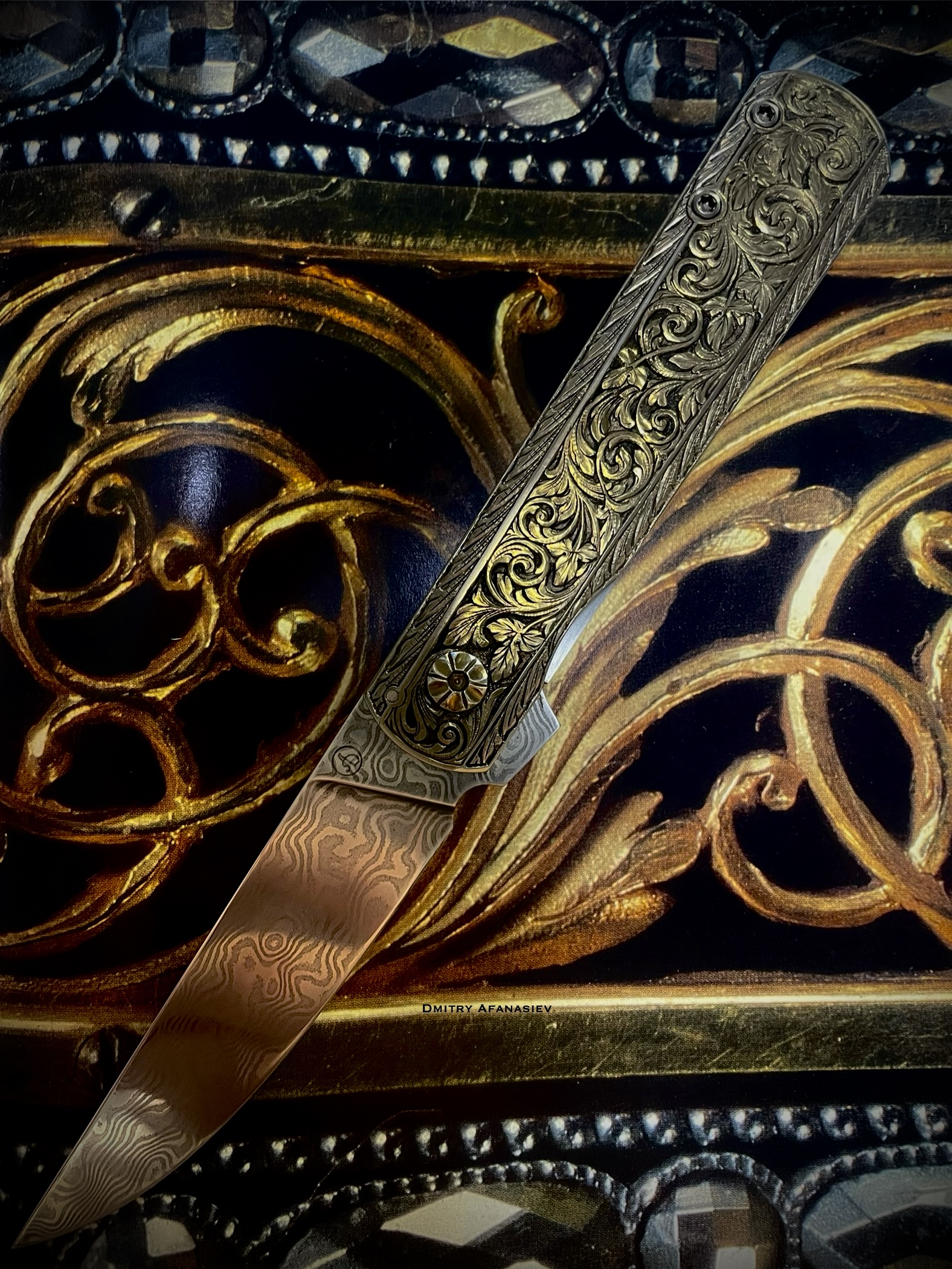 с ручной гравировкой и нержавеющим клинком.