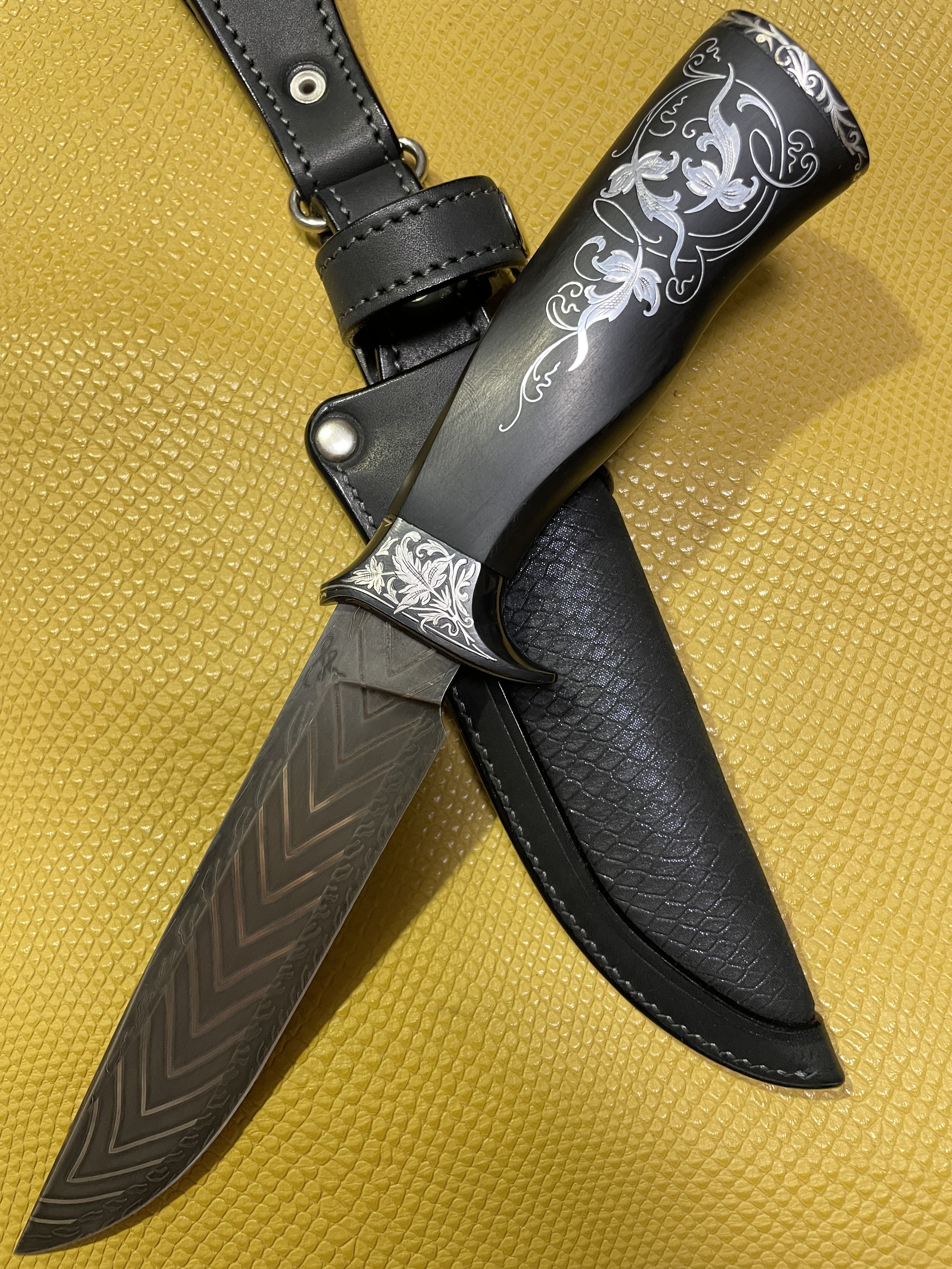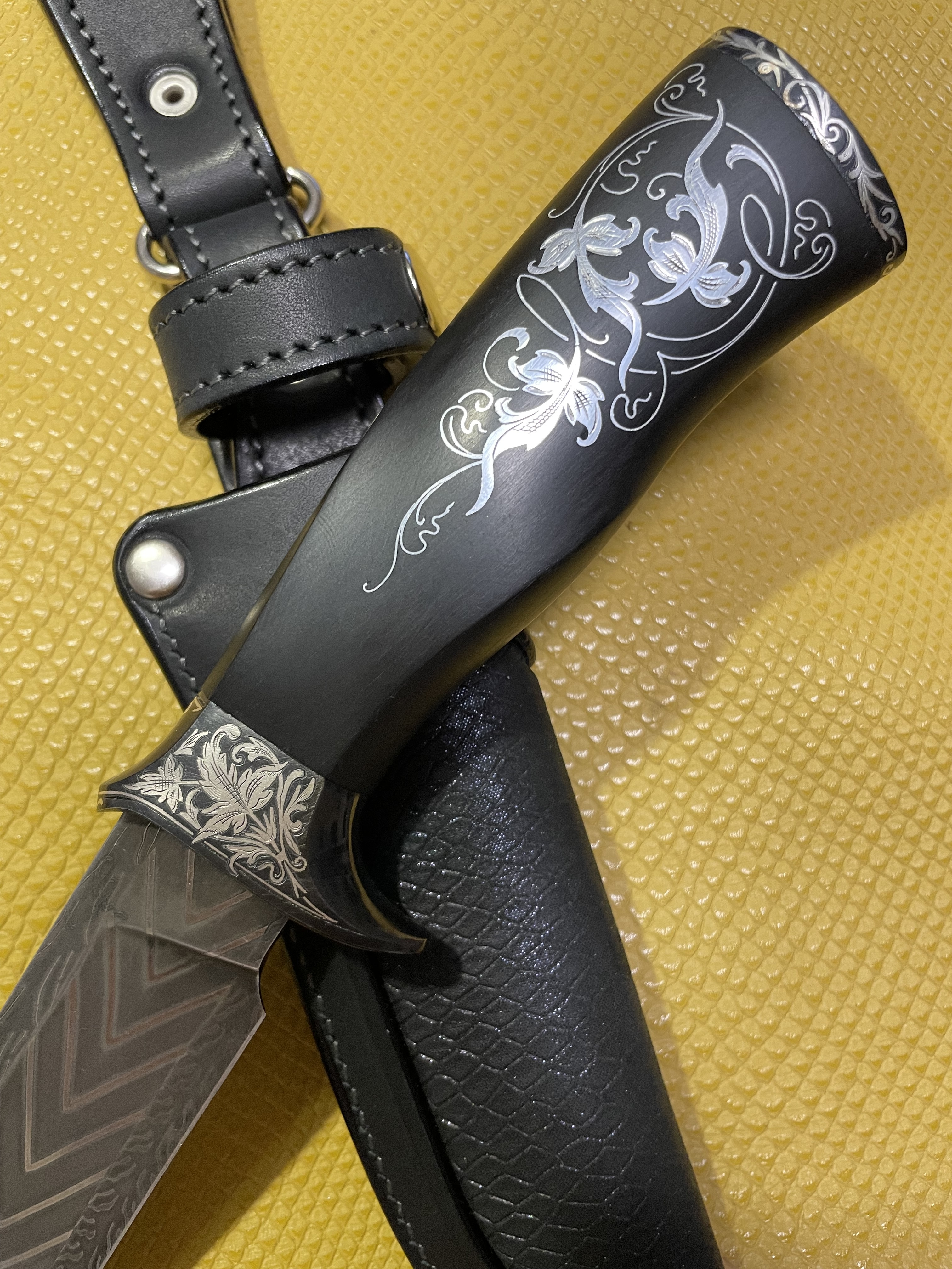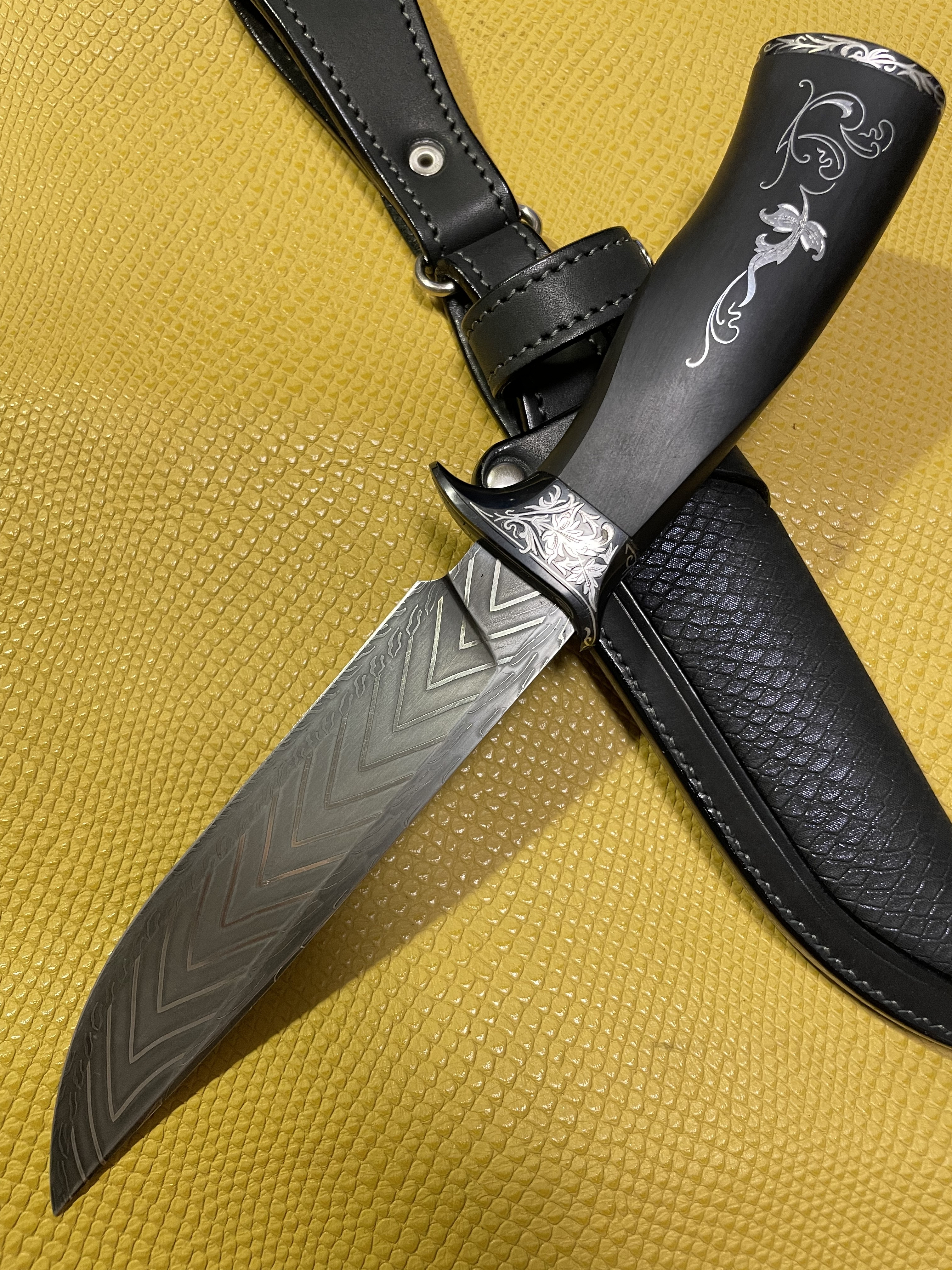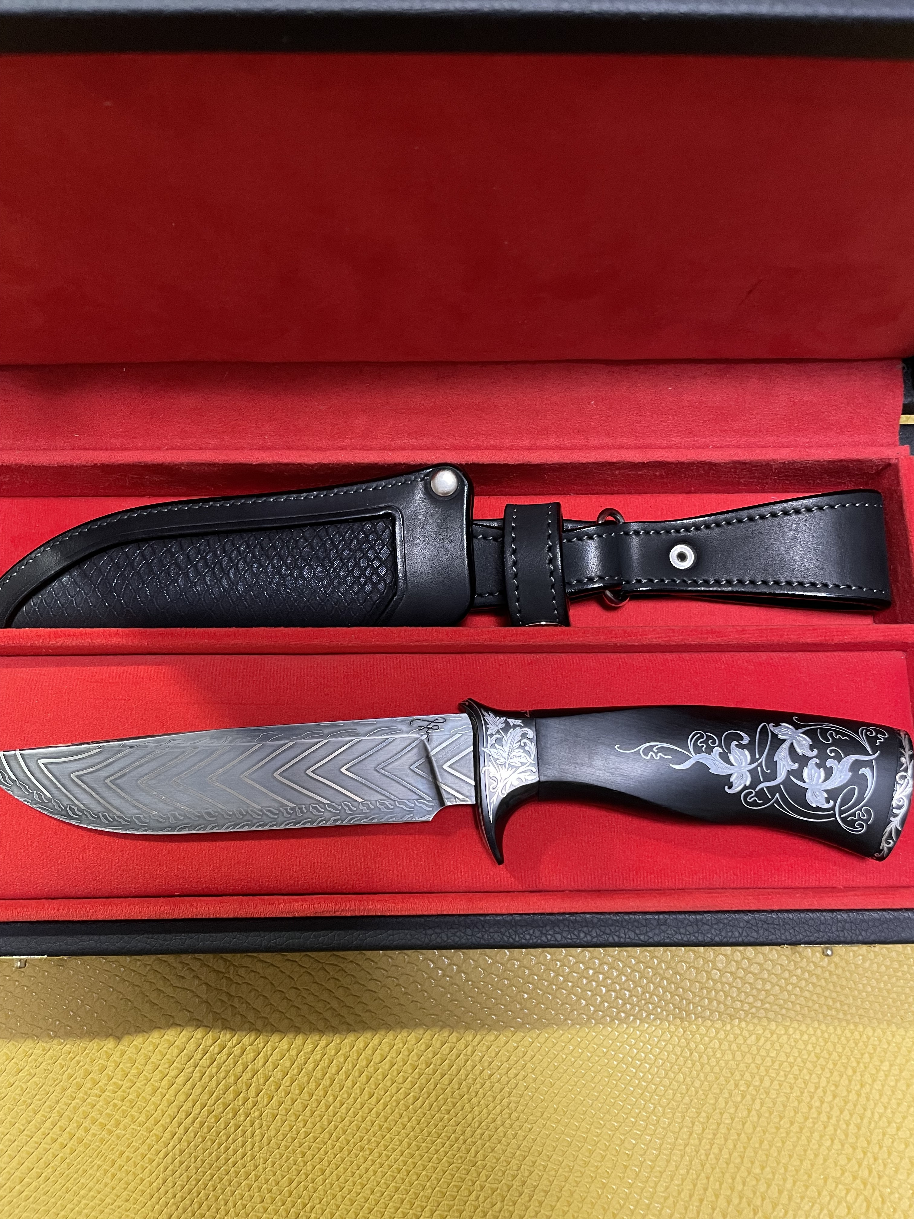 Клинок мозаичный дамаск твёрдость 60-62 единицы.