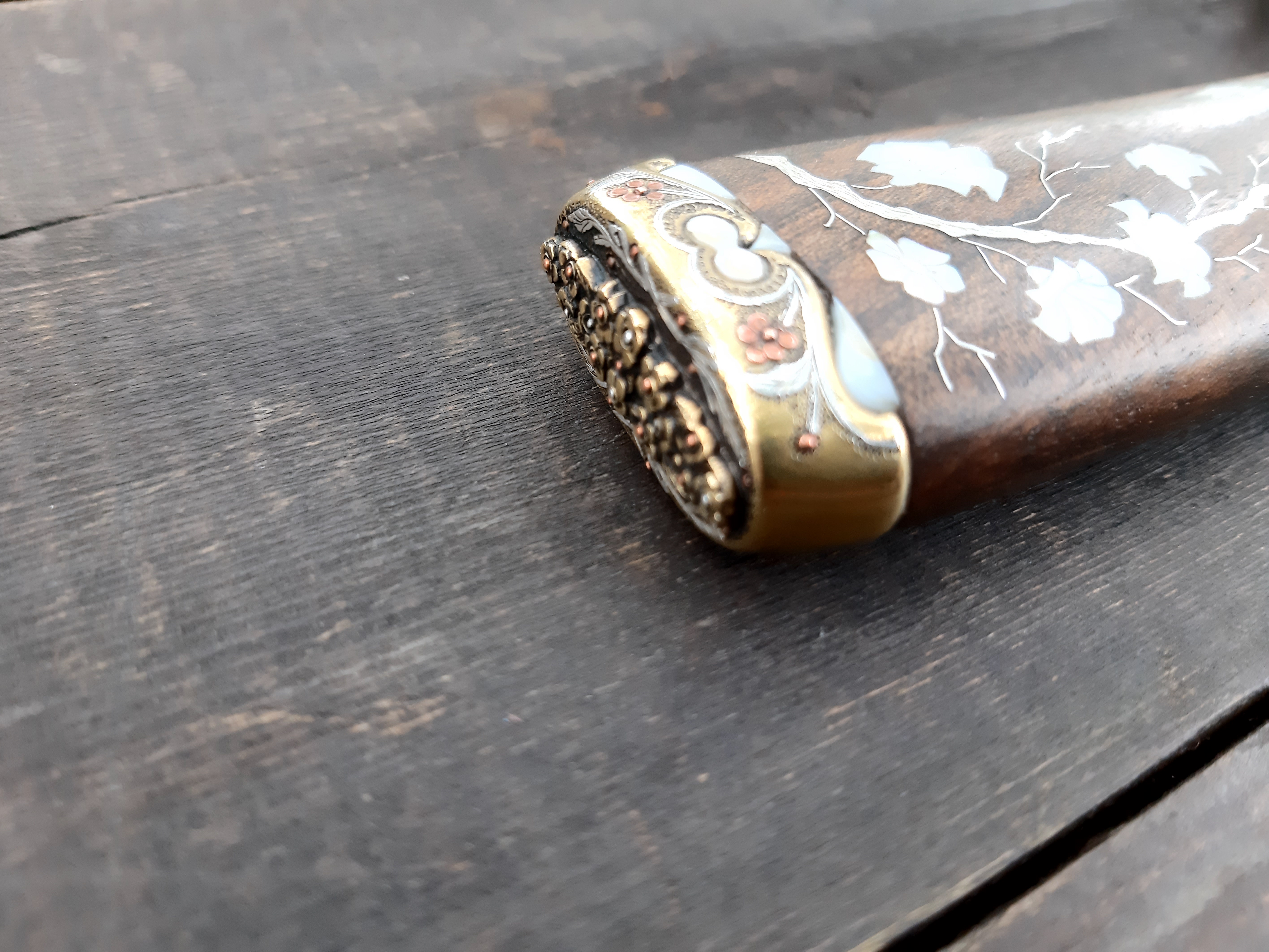 Материалы: орех,черное дерево,перламутр,желтый , белый металл, латунь.