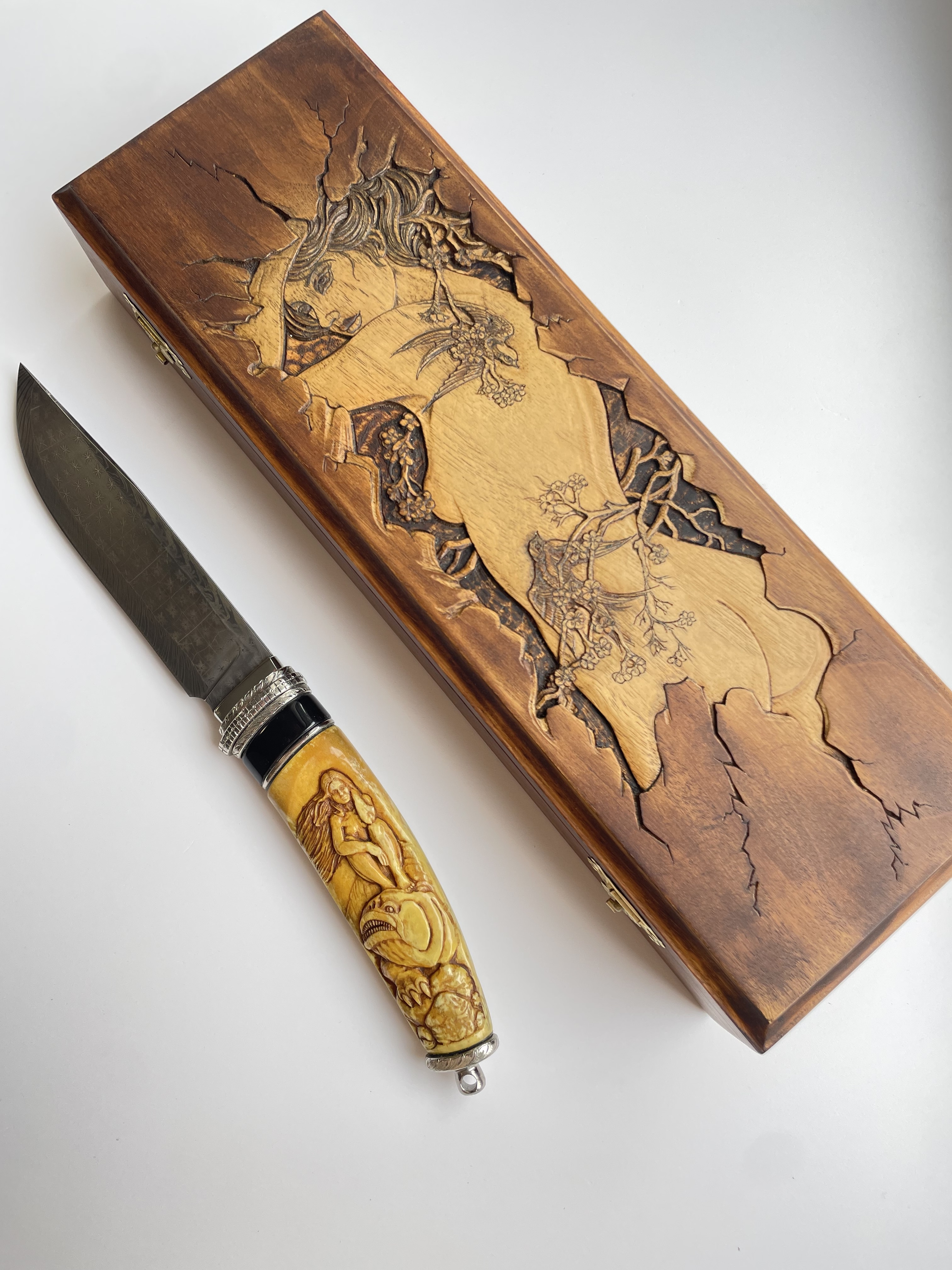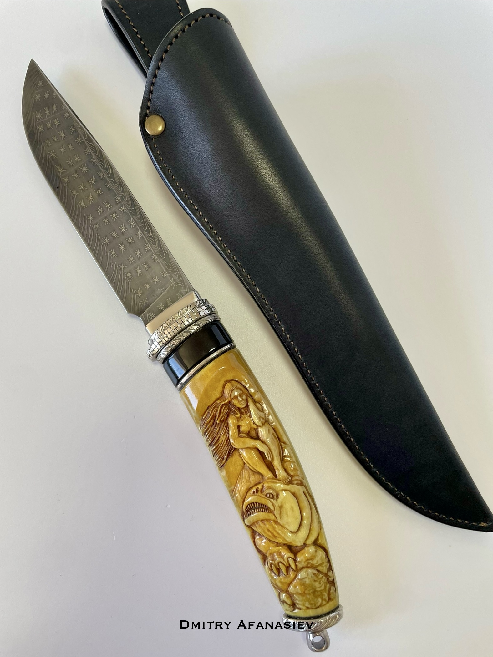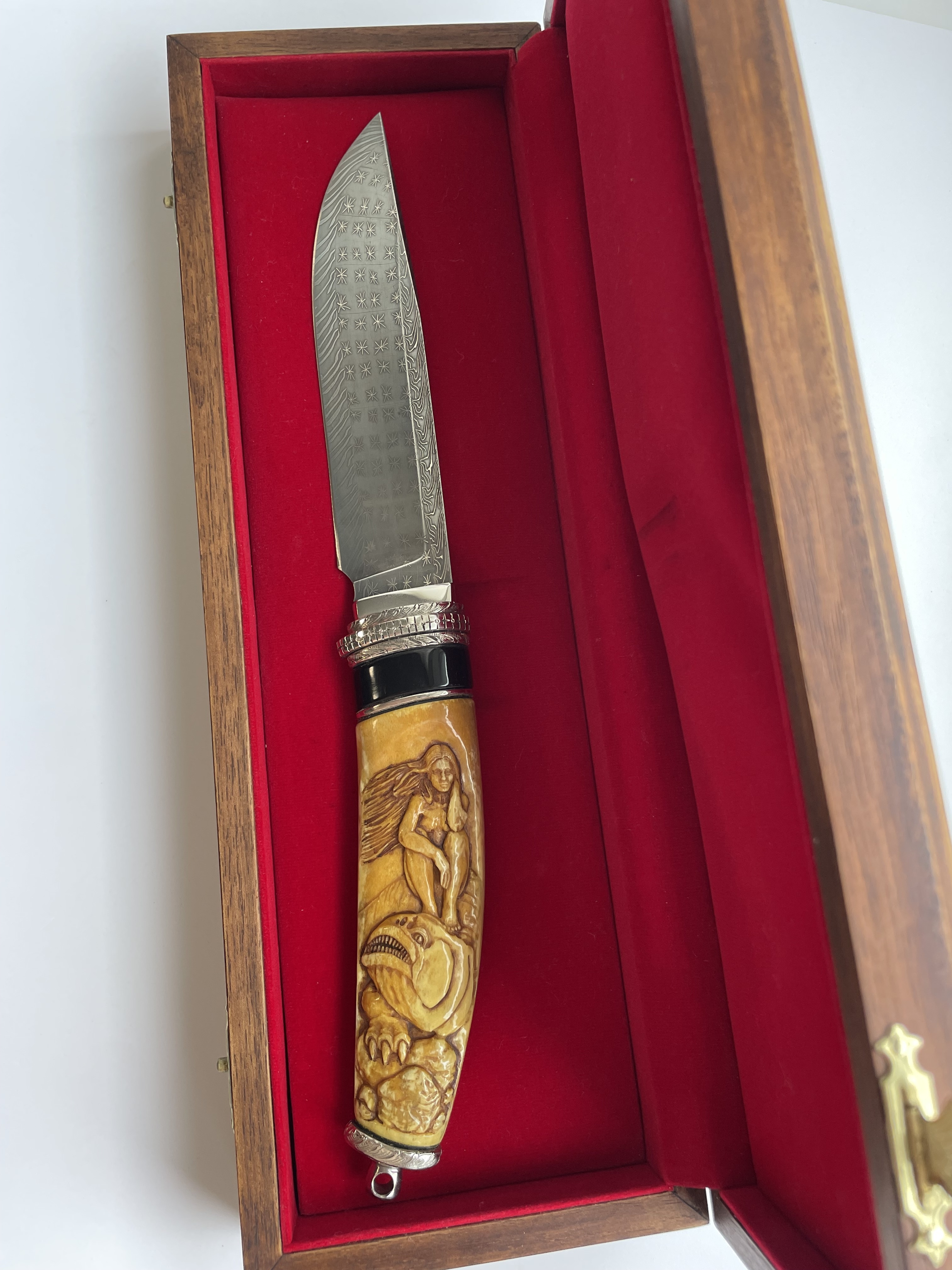 Мозаичный дамаск от кузнеца Пампуха.И.Ю с твёрдостью 60- 62 ед.