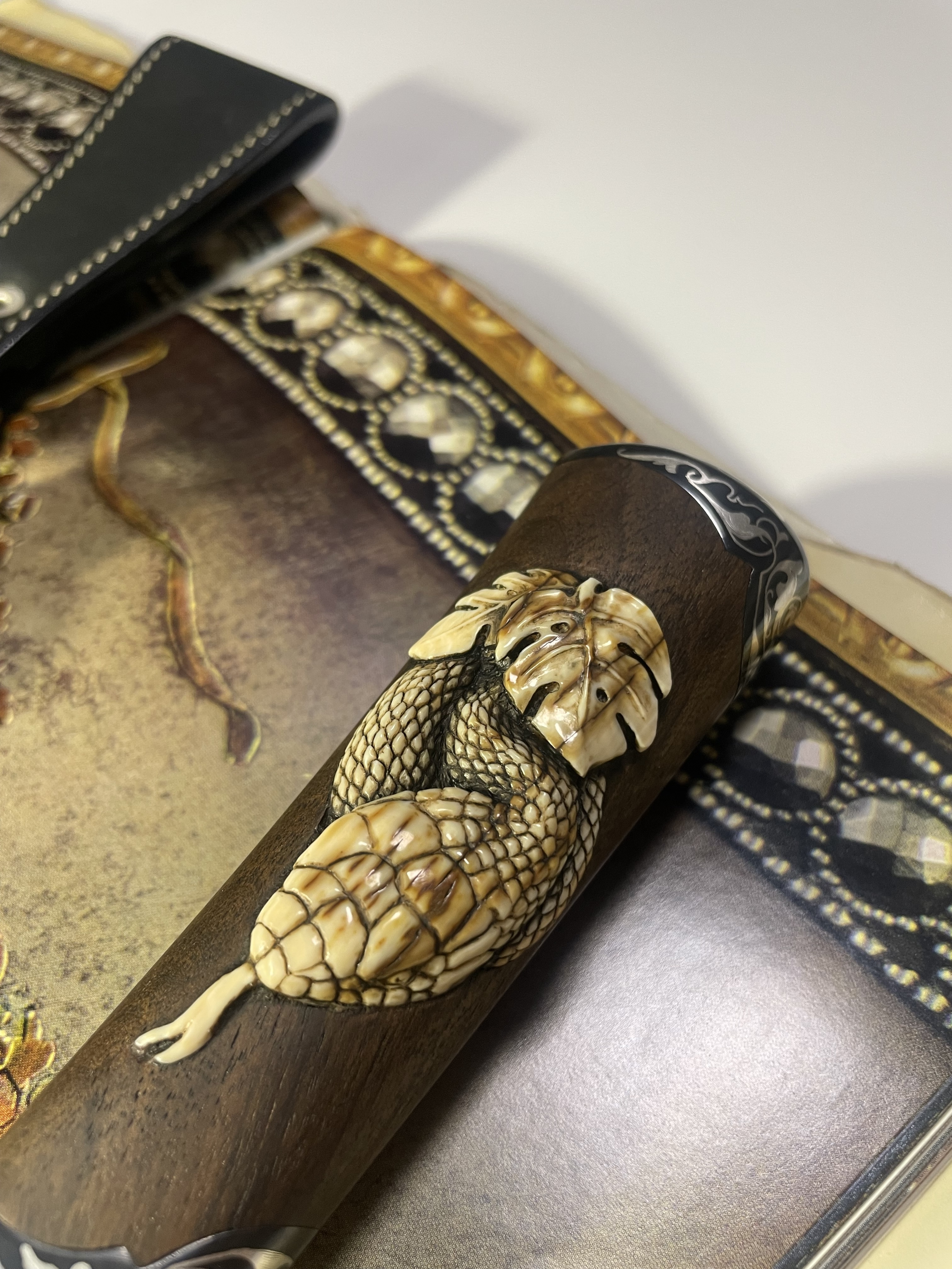 Ручная гравировка всечька белым металлом , резьба по кости ( мамонт).